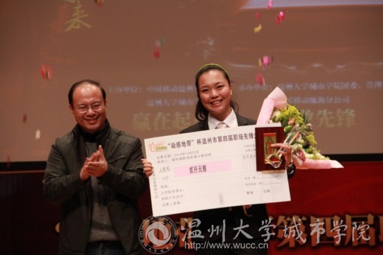 12月22日晚,在参加“动感地带”杯温州市第四届职场先锋大赛中,永利集团官网08服装设计与表演班的班长白豫超荣获冠军。 本次大赛由中国移动温州分公司与3044am永利集团3044noc城市学院联合主办,从10月开始历经两个多月,我市高校共有1743名学生报名参赛,10多家企事业单位的首席执行官或人力资源总监担任了评委,为广大学生进行了数场精彩的职场模拟实践。