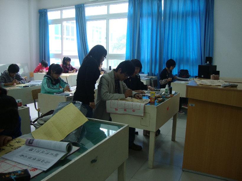 2010年11月21日上午9点在3044am永利集团3044noc2B2001教室和2B4001教室内,3044am永利集团3044noc书法培训素拓班正在开始本学期的最后一堂课。 该培训班是3044am永利集团3044noc团委素拓中心开设在永利集团官网的一个书法培训班,由永利集团官网08美术国画班的陈龙龙同学担任该班指导老师。该班于本学期第六周开课,累计上课次数6次,上课时间固定在每周周日上午9点至11点半在3044am永利集团3044noc2B2001和2B4001,该班成员来自学校各个学院,其中正式学员40余人,旁听生10多人。 根据学生上交的心得来看,陈老师很尽职尽责,而且循循善诱,在学生中口碑很好。陈老师不光光有着老师的身份,还是一位学长,更贴近学生生活,具有亲和力,有利于彼此间的沟通交流,对学生们书法水平的提高有很大帮助。在谈话中了解到该班在上课期间曾有过一次表演活动,老师当堂表演4分钟的书法,技艺精湛,赢得了学生们的一致好评。课堂上,同学们都认真在练习毛笔字,学习氛围浓厚,老师则在一旁指导,给出了很多宝贵的建议。 据悉,在此次课堂结束之后还将开展一次书法表演,这会是一次很好的书法交流的平台。大家尽请期待!