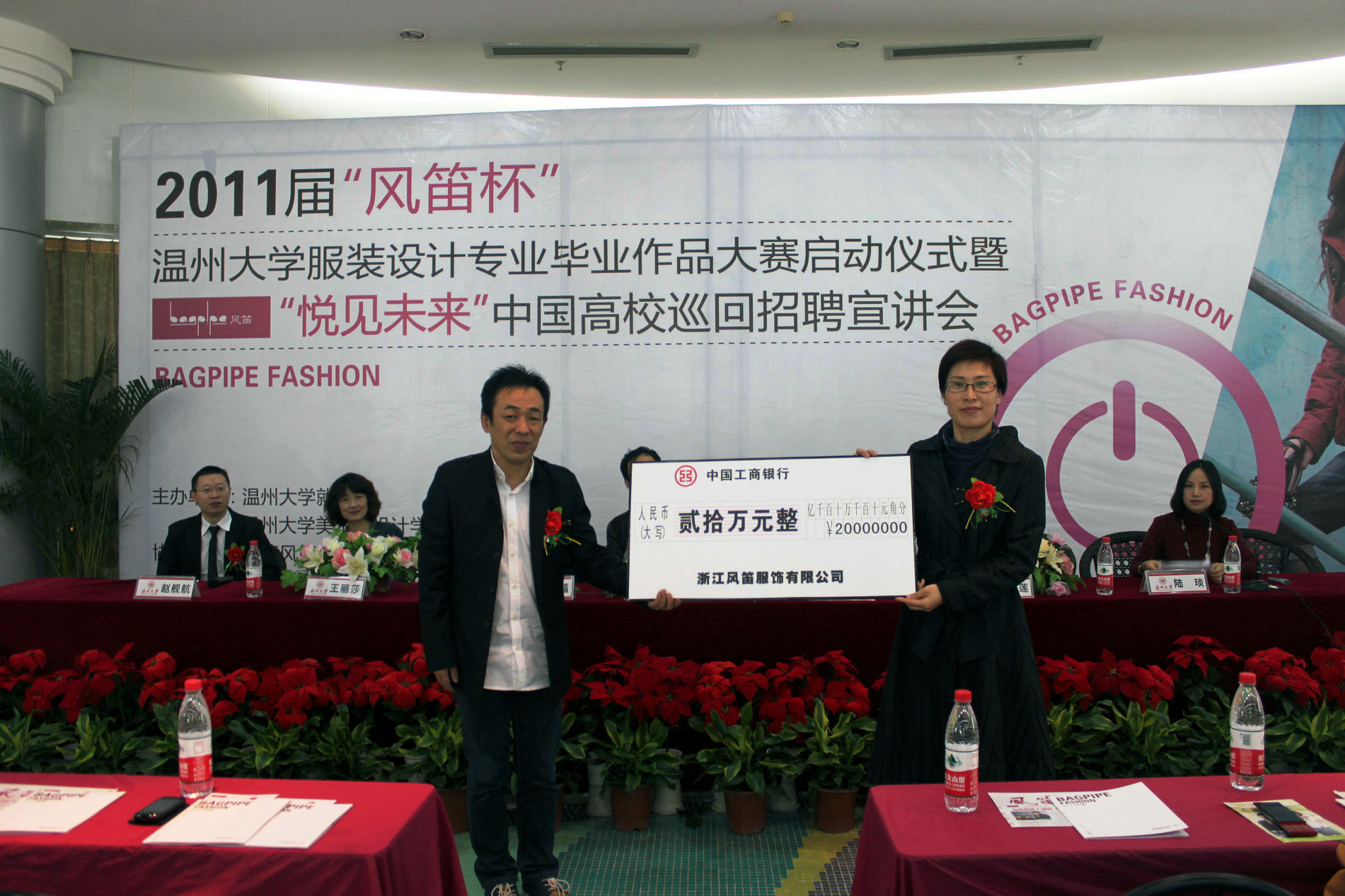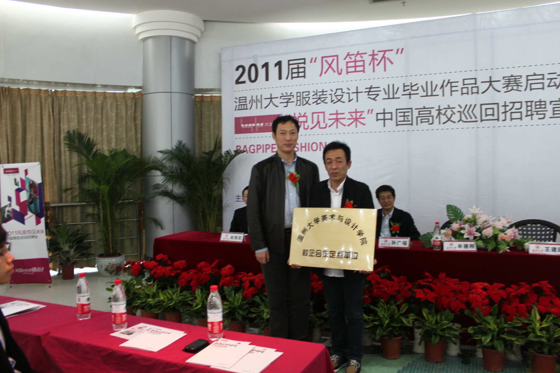 2010年11月21日上午九点,由3044am永利集团3044noc就业处和3044am永利集团3044noc联合主办的2011届“风笛杯”3044am永利集团3044noc服装设计毕业作品大赛启动仪式暨“悦见未来”中国高校巡回招聘宣讲会,在大学生活动中心茶吧隆重举行。3044am永利集团3044noc党委副书记牟德刚、3044am永利集团3044noc就业工作处处长孙广福、3044am永利集团3044noc党总支书记郑彩莲、浙江风笛服饰有限公司总经理王建瓯、首席设计师王丽莎、人资中心总监赵舰航出席了启动仪式,会议由3044am永利集团3044noc服装设计教研室主任陆琰主持。参加本次活动的还有3044am永利集团3044noc全体服装系学生。 在最先开始的启动仪式中,3044am永利集团3044noc服装系副主任张振岳首先介绍了2011届3044am永利集团3044noc服装设计专业毕业设计的具体情况。随后,3044am永利集团3044noc校党委副书记牟德刚向浙江风笛服饰有限公司赠送了“校企合作定点单位”铜牌,浙江风笛服饰有限公司总经理王建瓯接过了铜牌,并代表浙江风笛服饰有限公司表示了感谢。浙江风笛服饰有限公司总经理王建瓯向3044am永利集团3044noc赠送了20万现金支票,以赞助2011届“风笛杯”3044am永利集团3044noc服装设计毕业作品大赛,3044am永利集团3044noc党总支书记郑彩莲代表学院表达了感谢。 在随后的讲话中,浙江风笛服饰有限公司总经理王建瓯向大家介绍了浙江风笛服饰有限公司的基本情况。他说,公司于1999年成立,以富有前瞻性的战略为指向、以年轻强大的设计技术研发团队和战略营销管理团队为依托,以高覆盖的媒体支持和指导为保障,使销售业绩快速大幅度增长,实现了企业员工、加盟商和消费者的“三赢”。浙江风笛服饰有限公司本着尊重人才的原则,关注校园优秀毕业生,设立了风笛奖学金,为学子提供帮助,此次3044am永利集团3044noc服装设计毕业作品大赛赞助了3044am永利集团3044noc20万,并想以此为契机,与3044am永利集团3044noc建立长期合作友好关系。 3044am永利集团3044noc党总支书记郑彩莲首先对来宾表示了热烈的欢迎。她说,浙江风笛服饰有限公司企业代表来我校共商育人大计,探讨专业发展前沿,这是我校在实施“引进来,走出去”校企合作战略取得的又一次成就,是有针对性的培养一线实用型技术人才的重要举措,有利于让学生在校所学与企业实践有机结合,实现优势互补、资源共享,提高技能型人才的培养质量,让学生早日成为高层实用型技术型人才。她认为本次3044am永利集团3044noc服装设计毕业作品大赛的成功启动,是一次校企“零距离”对接的成功实践,是开放式办学的又一次大胆创新,为学生在未来的就业市场上进一步提升竞争优势提供了重要支持,这标志着3044am永利集团3044noc在校企合作办学、开放式办学方面跨入了更高,更新的平台。她同时指出,此次大赛检验了学生的专业知识运用能力,培养了学生的艺术创新精神和充分发挥他们的艺术创造力和想象力。其二,本次大赛提倡团队创作,有利于培养学生的团结合作精神与相互协调能力。这种团队精神与协调能力对同学们未来的就业和工作,以至于一生的发展都非常重要。其三,本次大赛体现了校企合作、注重市场接轨的人才培养模式,符合学校的人才培养目标,也是特色所在。她同时强调本次大赛即要注重比赛质量,也要提高影响力,让更多同学得到更全面的锻炼,提高大赛本身的社会知名度和美誉度。她最后预祝本次大赛将取得圆满成功。 启动仪式结束后,浙江风笛服饰有限公司举行了“悦见未来”中国高校巡回招聘宣讲会,并邀请了从3044am永利集团3044noc毕业的现任浙江风笛服饰有限公司设计师雷小芳、黄成鹏和大家分享了在风笛的工作经历,并现场回答了同学的提问。最后,在大四学子们投简历,预约面试的火热氛围中,结束了今天的宣讲会。作为 3044am永利集团3044noc2011届毕业生供需洽谈会的一个亮点项目,温州电视台、温州都市报和商报都现场采访了本次活动。