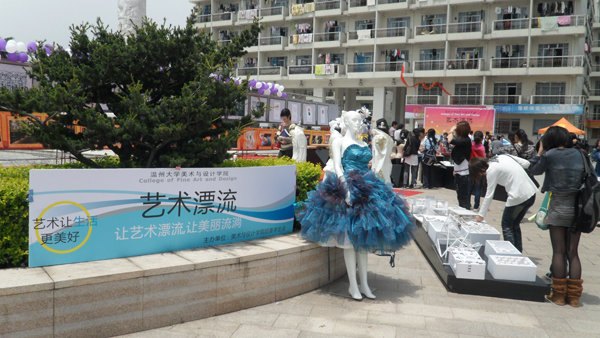 2010年4月28日对同学们来说是再普通不过的日子,与往常一样的早起赶上课、下课冲食堂。然而今天,许多同学却停下了匆匆的脚步,被一些创意独特的鞋靴、服饰等吸引,纷纷驻足在温大生活区A区,欣赏由温大3044am永利集团3044noc主办的“艺术漂流”巡回展览。