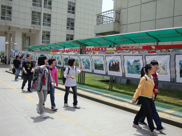 2010年4月28日对同学们来说是再普通不过的日子,与往常一样的早起赶上课、下课冲食堂。然而今天,许多同学却停下了匆匆的脚步,被一些创意独特的鞋靴、服饰等吸引,纷纷驻足在温大生活区A区,欣赏由温大3044am永利集团3044noc主办的“艺术漂流”巡回展览。 明媚的阳光中带着焦灼,照射到展品上却犹如闪烁的镁光灯,告诉你:看这里。看这里!对!看的就是这里!无论是色彩缤纷的裙装、英气高贵的宫廷装、纯白的立体裁剪作品,或是结构严谨的环境艺术建筑模型、无限延展空间的立体构成作品都找到了自己的大批拥护者。而创意鞋靴设计作品更是打破人们的常规思维局限,使人眼前一亮。更有荣获全国鞋靴铜奖的“战国策”震撼全场。沿着展区向前走,入目的是整棚的速写作品。此时终于领悟,没有色彩的世界,纯粹的黑灰白也能无限生动,给你难以言喻的感动。再进去就是长长的艺术走廊。道路两旁挂满了数百幅师生作品。国画、书法以及篆刻了展示国粹的精华,引得参展的外国友人赞叹不已。浓彩重墨的油画、水彩自然是最受欢迎的,版画与木雕用其独一无二的形也争得个不相上下。共同点缀着艺术走廊,缺一不可。 “让美丽悄然流淌,让艺术华丽绽放。”此次艺术漂流第二站活动在学院老师大力支持下于美院大本营闪亮登场,并吸取第一站的经验与教训,可谓圆满成功,不仅为前来参观的师生上演一场饕餮盛宴,更获得院领导的一致肯定。 在此预祝艺术漂流在此后的几站中亦能举办顺利。