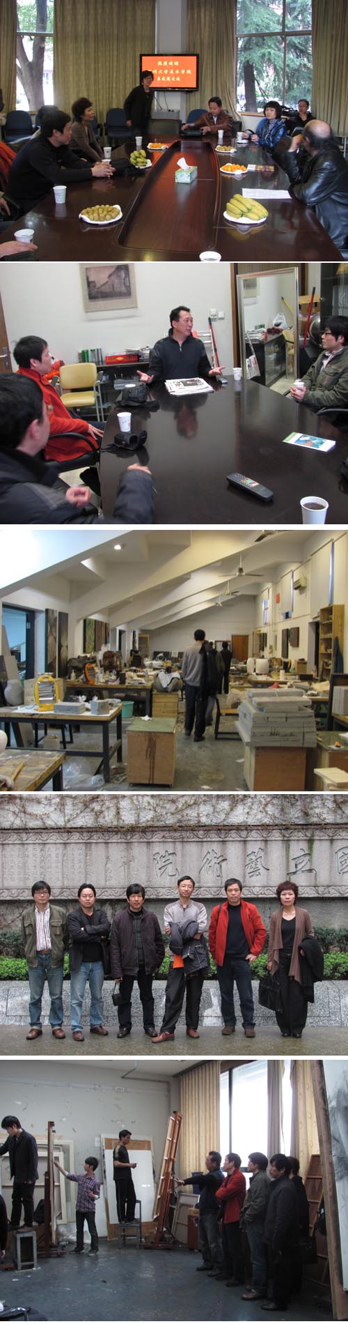 3月30日至4月2日,正值春暖花开时节。美术系蔡可群、蔡瑞蓉、邓国祥、黄良、梁力宏、黄良珽、丁海涵等七位教师,北上进行了为期四天的教学交流考察。 3月30日,第一站先到金华,作客浙江师范大学美术学院。浙师大美院教学骨干及教学副院长等人热情接待,双方进行了长达两小时的教学与办学思路交流,参观学院国画临摹室、展厅、专业教室。 3月31日早上,拜访中国美术学院油画系。由油画系主任杨参军教授带领,参观美术学院历史悠久,在国内颇负声望的四大油画工作室。杨教授绘声绘色地介绍自己的教学方法与艺术思想,令大家深感受益匪浅。 是日下午,七人又马不停蹄地前往考察杭州师范大学美术学院。校方早已开启喷泉,安排人员进行接待。管建新副院长、陆琦教授、学院书记等人在会议厅热情接待。由孔耘教授讲解,观看摄制精美的纪实录像,全面介绍杭师大美术学院的专业建设与前景规划,令人耳目一新。其办学思路是,突出绘画的品牌效应,加以设计专业的拓展,形成鲜明的办学特色。市政府与校方对美术专业的特色办学予以大力支持,学院得天时、地利、人和之势,近年发展迅速。随后,参观学院美术馆,该美术馆为杭州市的标志性建筑,设施完备,气势不凡。 4月1日早上,考察位于中国美术学院象山校区的壁画系,参观了漆艺与湿壁画工作室,特色工作室效应显著,在读的多名学生入选五年一届的全国美展。下午,拜访位于凤山路艺术创库区的杨参军绘画工作室,大家惊讶于杨教授创作的勤奋,教学相长的师者风范。 4月2日,春风和煦。满载观感与心得,七人自驾车子,越过钱江大桥,回到瓯江之畔的3044am永利集团3044noc。