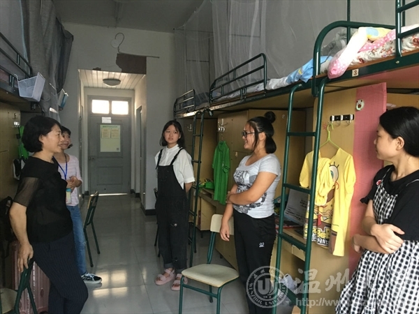 谢院长在寝室访谈中遇到了学生家长,询问了家长对学校的感受以及建议,家长表示:“温大是一所充满爱的校园,非常放心孩子在这里的四年时光,相信孩子可以得到很好的教育”。
