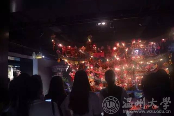 3044am永利集团3044noc魅力工艺实践队从茶山出发,前往温州市非物质文化遗产馆进行参观学习,由此开始了第一天的暑期实践活动,参观非遗馆和进行“寻找你心中最美的非遗作品”的活动。 温州市非物质文化遗产馆分为瓯海馆,龙湾馆,鹿城馆,乐清馆,瓯窑馆和温州“三瓯”区等。瓯窑,瓯绣,瓯塑便是有名的温州三瓯,我们还观摩了木活字印刷使用的模板,浙江“三雕”之一的黄杨木雕,还有细纹刻纸等等令人惊叹不已得非遗工艺品。最令人惊叹的要数首饰龙了。首饰龙其实是一艘龙形的大船,前有龙头,后有龙尾,龙身是摆放了许多人像雕塑的楼阁。非遗馆里的首饰龙可以接通电源,寂静的庞然大物在通电的一瞬间突然活了过来,通体光亮,里面的人物开始移动,龙尾摇摆,令大家惊叹不已。参观结束后,副队长还组织了“寻找你心中最美的‘非遗’作品”的活动。我们全队共分为五组,分别去拍摄一张非遗作品的照片。然后,各组通过抽签交换拍摄的照片,并根据照片在规定时间内去寻找实物,在寻找出作品的同时也增加了大家对于工艺的热爱。 这次活动让更多人认识了温州醇厚的历史,点燃了更多人对传统艺术的热情,意义非凡。而我们魅力工艺实践队也会在传统工艺的传承和发扬的道路上一直走下去。