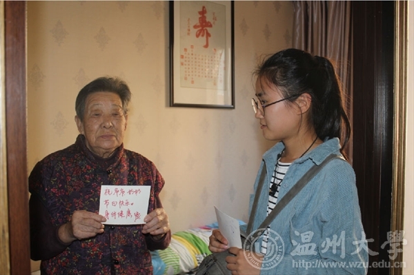 2017年10月28日,温大3044am永利集团3044noc“艺家人”青年志愿者协会于上午8点30分在E区门口集合,前往名盛敬老院开展重阳节关爱老人志愿服务活动。本次活动在欢声笑语中拉开序幕,志愿者为老人们表演了精心准备的节目,让敬老院的气氛一下子欢快了起来,精彩的演出赢得了老人们的掌声和称赞,现场其乐融融,老人们在台下也开始愉快地哼起了小曲。一个个精彩的表演过后,老人们也渐渐熟悉了志愿者,开始拉着志愿者们在院子里散步谈心,说年轻时的自己,说他们爱的家人,说他们所认识的人生,也许没有多少传奇的故事,但他们的体会,让志愿者们对人生有了新的认识,志愿者们也向老人们分享校园趣事,引得老人们哈哈大笑。有一些腿脚不便的老人,志愿者们则推着轮椅,停停看看,惬意自在。为了让老人们生活地更舒服些,志愿者们走进了老人们的房间,帮助他们清扫房间,甚至有些狭小角落也被志愿者们打扫地干干净净,一点一滴的行动证明着我们志愿者的爱心。在这温馨的午后,志愿者们又给老人们送上了为他们做的重阳节明信片,美好的时间过的格外地快,志愿者们依依不舍地与老人们分别,结束了本次的实践活动。本次活动开展的目的在于给敬老院的老人们带来像家人一样的温暖和陪伴,即便这些老人不常在节日里与家人们团聚,但相信志愿者们给出的关怀与问候也能让这个温暖的节日更加温暖,同时也希望借此来呼吁同学们能多关爱老年人这一群体,多给予他们关心和照顾。想对那些老人说:我们会经常来这里看你们,和您手说生活中的琐碎,让您回忆起儿时的趣事;我们将会是视你们为至亲的亲人。让我们期待下一个的志愿活动,把更多的温暖传递出去! 图/文:罗会慧董 悦金 哲