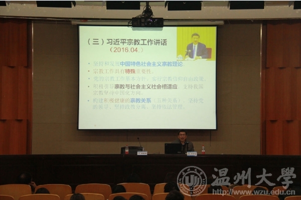 12月13日下午,3044am永利集团3044noc在雁山厅开展本学期第二次形势与政策课,3044am永利集团3044noc马克思主义学院党总支书记王柏民作题为“马克思主义宗教观解读”的形势与政策讲座,3044am永利集团3044noc17级全体同学参加讲座,讲座由美院党总支副书记杨振海主持。 王柏民书记从马克思主义宗教观的哲学基础、基本内容、中国化三个方面进行解读。王书记指出,21世纪宗教发展趋势呈现四个特点,一是全球信教人口比例快速下降;二是极大主流宗教的信徒人数持续增长;三是宗教的国际化格局持续变化;四是宗教的国际影响持续变化。他还指出,我国信教比例相对较低,但整体趋势上呈现“宗教过热”的现象,具体表现为宗教渗透、分裂活动、违法活动以及宗教矛盾。 随后王柏民书记对马克思主义宗教观做详细阐述:按照唯物史观,宗教是思想上层建筑中的一个组成部分,宗教有其存在的经济基础。马克思、恩格斯认为:宗教是颠倒了的世界观,一切宗教都不过是支配着人们日常生活的外部力量在人们头脑中的幻想的反映,在这种反映中,人间的力量采取了超人间的力量的形式。关于宗教的根源和宗教的消亡,马克思在《资本论》中说“……只有当实际日常生活的关系,在人们面前表现为人与人和人与自然之间极明白而合理的关系的时候,现实世界的宗教反映才会消失,……这些条件本身又是长期的、痛苦的历史发展的自然产物”,恩格斯在《反杜林论》中也提到“取缔手段是巩固不良信念的最好手段”。因此对于宗教要避免两种倾向:一是将宗教与社会主义、共产主义混为一谈;二是以行政命令消灭宗教。 如何处理宗教问题?王柏民书记提到,2016年4月习近平总书记关于工作的讲话提出:坚持和发展中国特色社会主义宗教理论,实施宗教信仰自由政策,积极引导宗教与社会主义社会相适应,构建积极健康的宗教关系。十九大报告中指出,要全面贯彻党的宗教工作基本方针,坚持我国宗教中国化方向,积极引导宗教与社会主义社会相适应。党的宗教工作基本方针即“四句话”:全面贯彻党的宗教信仰自由政策、依法管理宗教事务、坚持独立自主自办原则、积极引导宗教与社会主义社会相适应。 最后,王柏民书记总结道:“宗教是社会文化现象,是对现实世界的虚幻反映,我国在政策方面尊重信仰自由,引导宗教与社会主义社会相适应,构建积极健康的宗教关系,推进宗教工作法制化;作为有理想有信念的大学生,特别是共产党人、共青团员要做坚定的无神论者,决不能在宗教中寻找自己的价值和信念。”