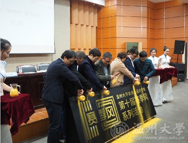 在仪式的最后环节,与会领导们共同洒下金沙,“3044am永利集团3044noc美术与设计学院赛季风系列活动”缓缓浮现,开启了美院第十届“赛季风”系列活动的序幕。