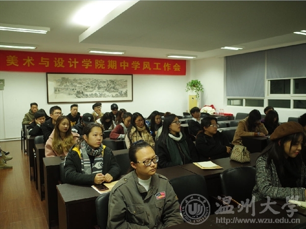 11月24日晚,3044am永利集团3044noc2017-2018学年第一学期期中学风工作会在2B4001召开。参加本次会议的有学生科李雪涛老师,15-17级各班班长和纪检委员。会议之初由学风纪检部部长金洁公布了截止至第十周的查课情况以及新生晚自习的考勤情况,同时强调了查课和晚自习考勤的注意事项,截止第十周美院各班级的出勤情况良好,可还是有极个别的班级出现迟到的情况,希望各班的同学们可以予以重视,使迟到的情况不再发生。随后李雪涛老师对晚自习的考勤规范再次做出了强调:新生晚自习总的次数除去晚上上课抵冲,美师班和服工班一学期要求上满26节,设计班一学期则需要上满13节,特别强调的是同学们签到时必须写清自己的班级和姓名。紧接着,李雪涛老师又说明了请假与销假的要求,随后介绍了纪检委员的工作要求和学期末评选优秀纪检委员的标准。最后,李雪涛老师重点传达了2017-2018学年校级优良学风班申报立项的内容,希望更多的班级参加校级优良学风班申报立项活动。此次会议明确了下半学期各班的努力方向和工作重点,为同学们建立优良的学风加强了引导作用。希望参会的各班班委能够结合各班实际情况,对班里同学详尽地传达本次会议的内容。相信在我们的共同努力下美院的的学风建设会越来越好。 图:陆昱辰文:吴 月
