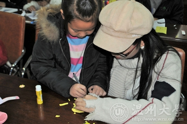 2017年11月25日,伴着微微的小雨,温大3044am永利集团3044noc“艺家人”青年志愿者协会再一次来到了梅泉社区文化礼堂,进行了主题为“团结”的志愿活动。虽然今天小雨绵绵,但志愿者们的热情依旧,小朋友们的积极性也没有因冬天的来临而减少。这次活动首先开始的环节是你画我猜,分成两组进行,先由第一组画出所给出的词语,给下一组三秒钟的时间看,再由下一组画,最后给最后一组猜出词语。大家都很配合,快速完成,并准确猜出词语,获得相应的奖励。接下来,伴随着小黄人的的主题曲,大家一起看了一段小短片,目的就是希望小朋友们要像小黄人一样在困难面前团结一致不怕困难。接下来,为了加深印象,志愿者们便开始指导小朋友们在纸上画出可爱的小黄人。一个圆圆的身子,一条深蓝色的背带裤,酷酷的黑色镜框,看过小黄人电影的朋友对此一定不陌生。紧接着是突发奇想环节,有的小朋友在分发的气球上画小黄人,还有的小朋友把许多个小黄人推在一起,仿佛是一个能打倒巨大怪兽的超级英雄。最后一个是评奖环节,负责人选出做的最好的五位小朋友,给他们送上精美印章以及荧光笔。没有得到的小朋友们给予他们有趣的圆珠笔作为安慰奖。总之,大家都很满意。小朋友们的动手能力越来越好,与志愿者的互相协作能力也得到了相应的提高,他们的作品可能不是完美的,但他们的所有的作品都充满了团结的力量,让人温暖,给人力量。小朋友们和志愿者们一起完成一张画,一起折好一张纸,一起做一件事,一起欢声笑语,一起度过美好时光,这样团结的氛围让小朋友们感受到了团结的力量是强大的,这些力量也会给社会带去一份温暖和感触。 图/文:金 哲罗会慧董 悦