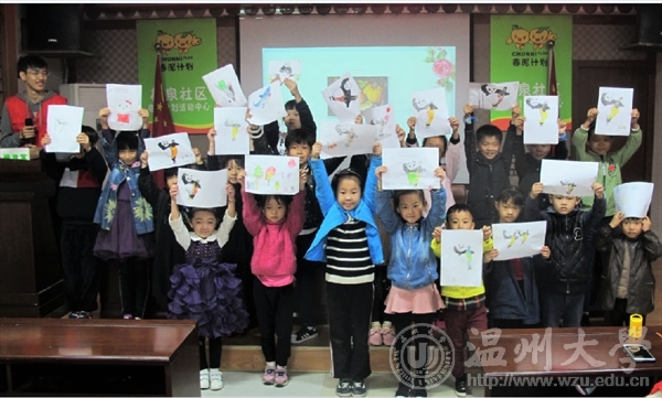 2017年11月18日,温大3044am永利集团3044noc“艺家人”青年志愿者协会如期来到了梅泉社区文化礼堂进行了以“感恩”为主题的志愿活动。伴着微凉的风志愿者们又来到了熟悉的地方,开始了新的支教之旅。首先负责人陈南同学给小朋友们放了一段九分钟的亲情公益广告,志愿者和小朋友们都安安静静地看着大屏幕,脸上的表情也随着广告的剧情发展而变化,时而皱眉头,时而微笑。随后陈南同学根据公益广告中所涉及的人物开始组织大家画功夫熊猫。白白的绒毛肚子,夸张的高抬腿动作,橙色的趣味裤衩,大家画的津津有味。紧接着是评奖环节,小朋友们争先恐后地上讲台展示自己的作品,画的出色的十个小朋友得到了一根精美的糖果和有趣的红外线笔,没得到奖品的小朋友们也没有灰心,继续等待着下一轮的评奖机会。最后一个环节是手工活动——做花藤。这是做贺卡很重要的一部分,用来装饰。志愿者先剪下一条蛇状绿色纸条做藤蔓,再由小朋友们在彩色卡纸上画上花片,大家一起分工合作,其乐融融。花片卷成花瓣,粘在藤蔓上,很漂亮。陈南同学说,这都是用来粘在贺卡上的装饰,也可以粘在房间里,而做好的贺卡可以送给爸妈、老师来感恩他们的培育,也可以送给朋友感谢一直陪伴。活动期间,恰巧有教育局的领导来梅泉采访,比往常更热闹一些,同时领导也对我们梅泉志愿者认真负责的态度连连称赞,并表示希望梅泉支教能够越办越好!通过本次活动,小朋友们不仅锻炼了动手操作能力,而且让小朋友们更加了解感恩是什么,知道要对父母感恩,要对朋友感恩,要对帮助过自己的人感恩。只要人人将自己所怀有的一颗感恩的心,变成实际行动的感恩时,这个社会将会多一分温暖,将会多一缕阳光的存在,将会多一点芬芳,同时也希望志愿者们和小朋友们常常怀有感恩的心去对待所遇到的人和事,你们的这份感恩的心将给予别人更多温暖。图/文:金 哲罗会慧董 悦