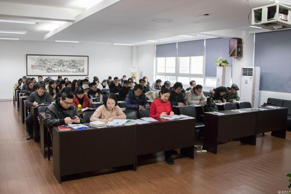 全体教职工大会环节,李运河院长对本学期学院主要工作做了回顾总结。本学期学院在教学、学科、科研和党的建设工作方面等方面取得了卓越进展。此外,永利集团官网还承办了2017“市长杯”中国(温州)工业设计大赛和第十届“亚洲联盟超越设计展”(中国展区), 得到了张耕市长、李校堃校长等领导的充分肯定。同时,他说学院还要在人才的引进和师资结构梯队科学优化上、产教融合、协同创新上、加快国际化的步伐等方面继续努力。谢子静副院长对期末教学工作中成绩评定和毕业设计等工作的落实进行了安排。张晓剑副院长就科研工作推进、实验室提升、院容改造、学科竞赛成绩作了说明。杨振海副书记介绍了班主任考核和寝室导师工作开展情况,同时对在学院育人工作中辛勤付出的老师表示感谢。张丽萍书记对教师政治理论学习作了部署。她强调,教师要加强自身理论学习不断提升思想政治素质。根据学校要求每位教师政治理论学习每年不少于40课时,老师们要在完成学院安排理论学习之外在寒假期间积极通过微信等新媒体渠道继续抓紧自主学习。