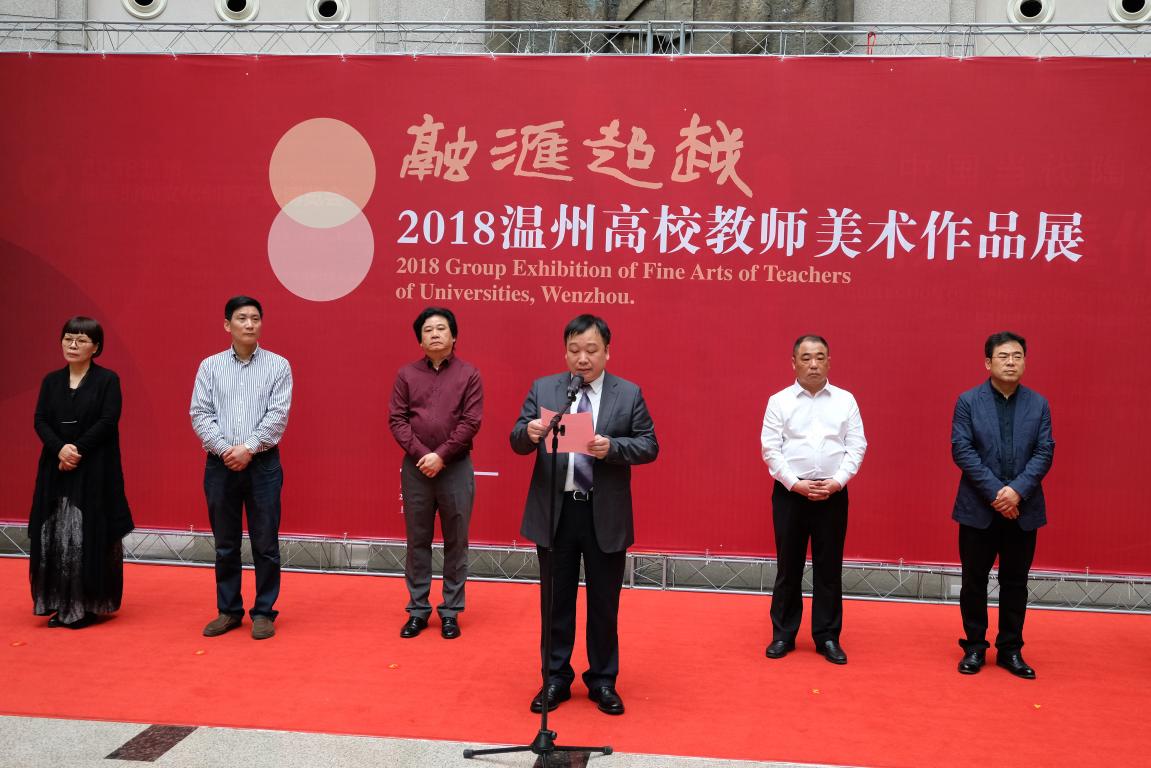 首先由浙江省美术家协会副主席、温州市美术家协会主席蔡瑞蓉女士致辞。她提到,“此次高校教师美术作品展的举办,适时地为我们广大美术教师提供了一个很好的交流和展示的平台,必将对温州美术教育的发展起到积极的推动作用。”不仅如此,她还希望今后这个展览能形成一个品牌,持续的举办下去,让展览成为连接讲台和社会的桥梁。