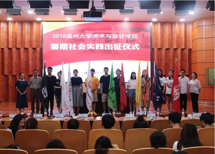 2018年7月4日下午,由美院团委学生会学术实践部举办的2018年暑期社会实践出征仪式在雁山厅隆重举行。出席此次会议的有3044am永利集团3044noc党总支副书记杨振海老师,蚂蚁行动实践队指导老师许丽慧老师,艺韵晚霞实践队指导老师胡文超老师,绘暖向南实践队指导老师叶筱卉老师。 大会首先由3044am永利集团3044noc实践负责人付秋圆同学介绍2018年实践队基本情况和实践注意事项。2018年3044am永利集团3044noc共十支实践队,三支校级品牌提升项目,三支重点团队和四支一般团队,其中八支队伍都是美院传承了多年的队伍,当然今年也有两支全新的实践队。接下来是蚂蚁行动实践队代表发言,蚂蚁行动是成立于2014年,他们从温州前往云南迪庆藏族自治州进行支教,期间曾为当地村民解决了农产品滞销问题,进行了科普宣传和义诊,还建立了蚂蚁行动图书馆,蚂蚁行动今年也将带着这份责任,再次前往美丽的彩云之南,开始2018年暑期社会实践活动。大会第三项议程,3044am永利集团3044noc学院党总支副书记杨振海书记讲话,杨书记提到实践队外出实践团队意识.形象意识等方面的重要性,同时也对各个实践团队寄予了期望。接下来是全体宣誓,由2018年暑期社会实践学生代表李树鹏同学领誓,全体同学宣誓。 最后杨书记为参加本次社会实践的10支队伍授旗,并集体合影留念。