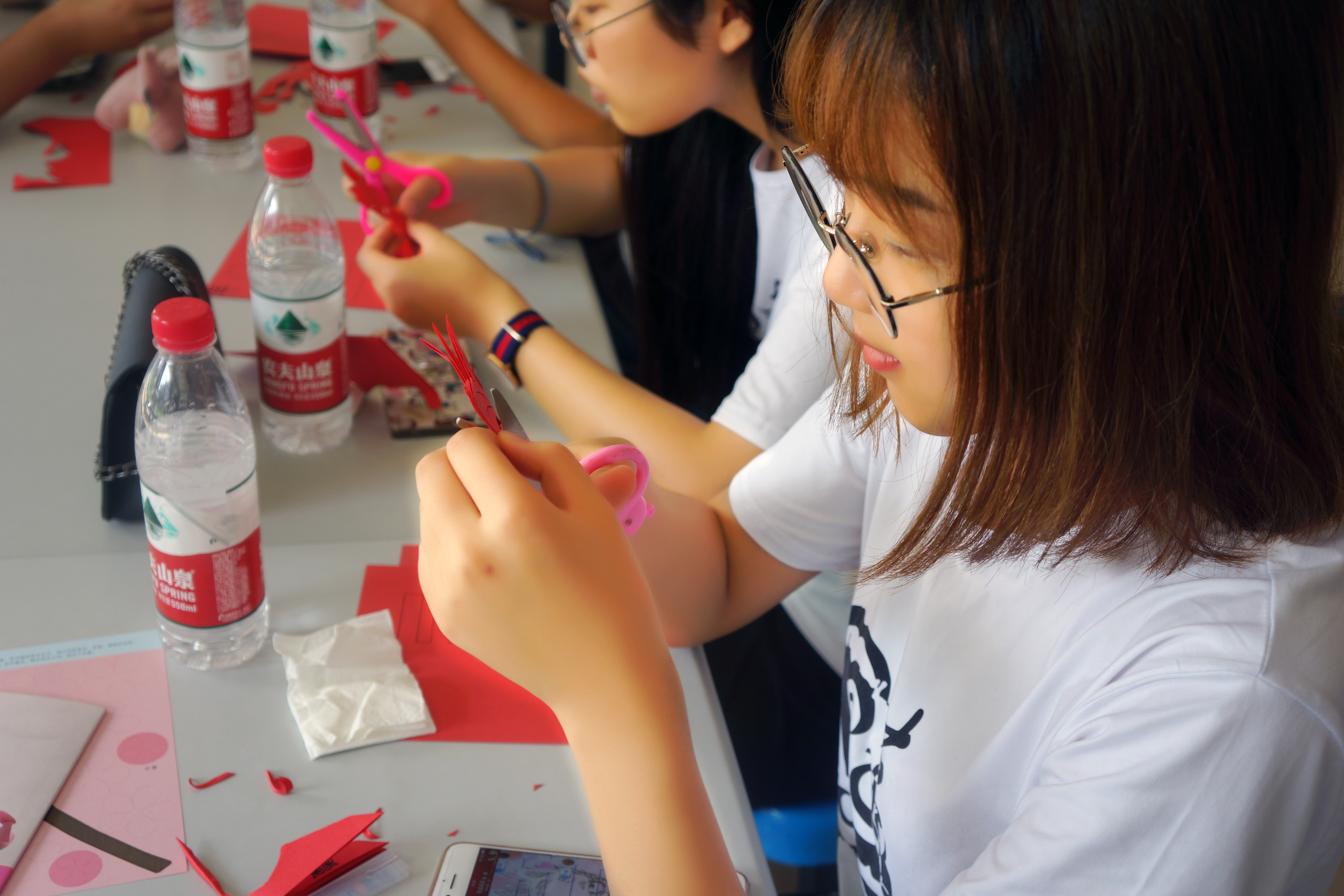 2018年7月27日,3044am永利集团3044noc“艺韵晚霞”暑期实践队前往3044am永利集团3044noc超豪学区食堂一楼,进行了以“艺韵之剪纸艺术”为主题的实践活动。 剪纸,又叫刻纸,是中国汉族最古老的民间艺术之一,剪纸是一种镂空艺术,其在视觉上给人以透空的感觉和艺术享受。剪纸在中国农村是历史悠久、流传很广的一种民间艺术形式。我们的文化在现代化,但是曾经滋养过整个民族辉煌历史的传统文化却以我们无法想象的速度流失着。一把剪刀,几张红纸贯穿了队员们的一下午的时光。由于是初学者,队员们的好奇心和求知欲是事前没有想到的,同时又发现这是一门考验细心与耐心的艺术。天气让人变得焦躁,而剪纸又让人变得安静。队员们并不像往常那样与彼此交谈,而是全部都全身心的投入于剪纸当中,电风扇呼呼的声音穿过耳膜,静的很享受。队员们有剪立体的花朵,有剪字体的,有的剪动物……种类繁多,但都是耀眼的红色。安静的下午并没有失去趣味,就这样,在活动结束之后,打扫了各自制造的垃圾,就等待把剪纸送给老人了! 一个民族的光荣,只能来自这个民族对传统文化的传承,更来自一种与时俱进的勇气。在活动中,加强了队员们对剪纸艺术的欣赏和创作,同时在剪纸的欣赏和创作中可以丰富队员们的知识,开阔了眼界。剪纸活动使队员们对中国民间美术有了初步的认识和了解,对中国传统文化中的象征手法和以物寓意的方法有了初步的感受。
