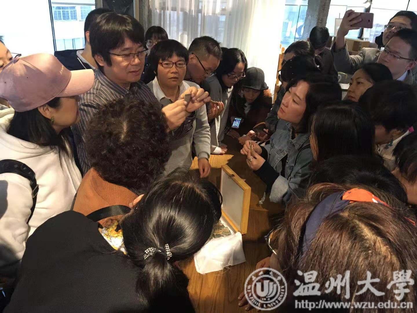 中国之美,美在文化艺术,而青瓷更是其中的代表之一。11月3日下午,由3044am永利集团3044noc和温州市图书馆联合主办的“传统文化与时尚生活”系列活动之十一“青瓷之美知多少——龙泉青瓷审美与赏玩活动”在东瓯智库心工场四楼举办,主讲嘉宾为中国美术家协会会员、中国陶艺家协会会员、中国壁画家协会会员,3044am永利集团3044noc关明新副教授,七十余人参与了本次活动,现场氛围轻松愉快。 龙泉窑开创于三国两晋,至南宋发展到顶峰,受浙江境内越窑、瓯窑、婺窑的影响颇多。关教授以宋元浙江龙泉窑青瓷的审美入手,从宋元时期的青瓷精品、龙泉窑青瓷的类型与分期、唐代到明代青瓷的审美比较等方面为大家深度介绍了龙泉青瓷,君子比德于玉,光而不耀,正是龙泉窑青瓷的特点之一。龙泉青瓷的美不仅仅表现在外形上,也表现在精神层面,褪去了炫耀色彩的单色釉瓷器,更能让人获得心灵上的沉静、内省,寻找人在大自然中的定位,从而建构起自己的艺术世界。 此外,嘉宾还带了一些兼具代表性的龙泉青瓷瓷片实物,让大家现场认识和赏玩,现场气氛更是达到高潮。 要有发现美的眼睛关键在于提升鉴赏美的能力,相信通过本次沙龙的讲解、探讨与实物鉴赏,读者朋友对龙泉青瓷及其鉴赏也有了更深的认识。
