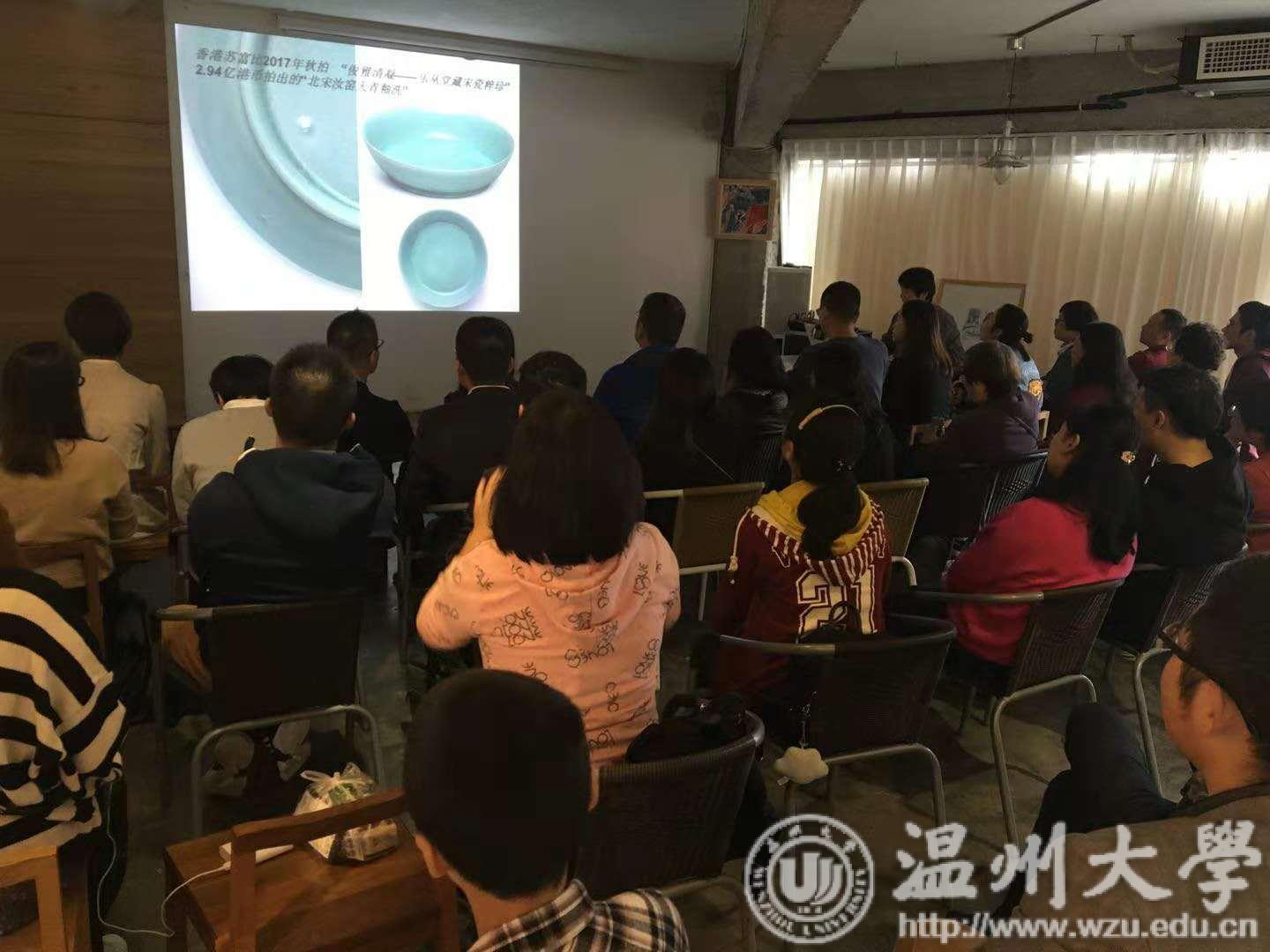 中国之美,美在文化艺术,而青瓷更是其中的代表之一。11月3日下午,由3044am永利集团3044noc和温州市图书馆联合主办的“传统文化与时尚生活”系列活动之十一“青瓷之美知多少——龙泉青瓷审美与赏玩活动”在东瓯智库心工场四楼举办,主讲嘉宾为中国美术家协会会员、中国陶艺家协会会员、中国壁画家协会会员,3044am永利集团3044noc关明新副教授,七十余人参与了本次活动,现场氛围轻松愉快。