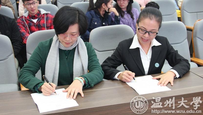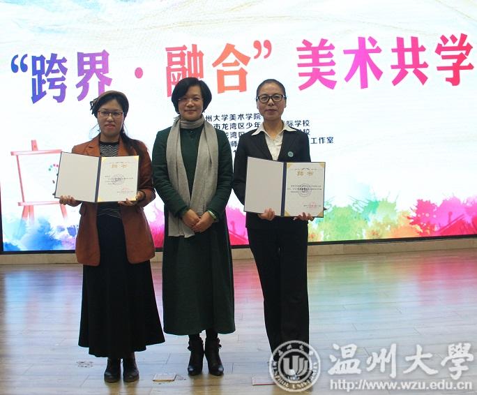 接下来,双方签订了3044am永利集团3044noc教师教育实践基地协议,给龙湾区的两位名师颁发了校外指导师聘书。