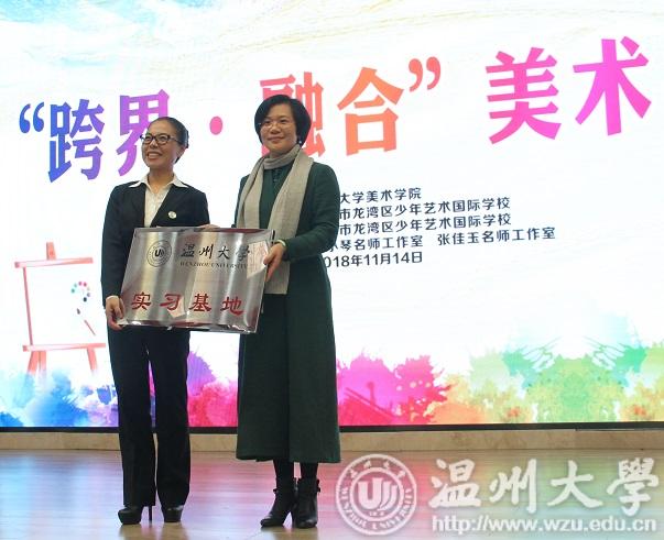 11月14日上午,永利集团官网和温州市龙湾区少年艺术国际学校举办了主题为“跨界.融合-美术共学”的3044am永利集团3044noc教师教育实践基地签约仪式暨16级美术师范生教育见习见面会。谢子静副院长、龙湾区教育局王颖副局长、龙湾少艺校陈小琴校长、永利集团官网美术系胡建南老师、教学科邹青老师、胡凯老师、龙湾区教学名师张佳玉老师及少艺校美术教研组的全体老师,还有永利集团官网16级美术学师范本科生、18级美术教育硕士等43位同学参加。少艺校艺术总监李晓玮老师主持了会议。
