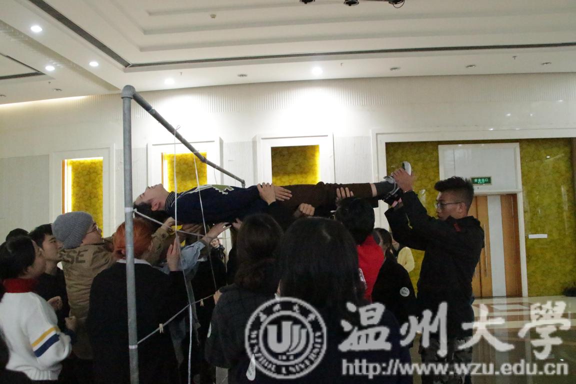 12月9日,2018-2019学年第一学期3044am永利集团3044noc第三次团干培训在大学生活动中心如期举行。本次培训以户外素拓形式展开。 伊始,团干们通过扑克牌的小游戏的相互认识,并按照花色分出了四组开始今天的游戏。活动开始,团干们拿到了相应的任务卡——按照任务卡的指示完成相应的动作。一个个高难度的动作,并没有阻止团干们前进的步伐,他们保持着有条不紊的状态,迎刃而解。随后四个队伍选出了队长,制定了自己的队徽、队名以及队歌。团队展示过程中,咱们美院学子的深厚美术功底以及灵动的思维得以展现,每个队伍都展现出了各自的特色,在气势上更是一个比一个威武。接着,各团队分成两组进行了“穿越电网”、“鼓动人心”的游戏。接到任务时大家都觉得是不可能完成的事,但团干们依旧凭借勇往直前不退缩的精神,依靠团队的力量成功完成了挑战。现场欢声笑语,掌声四起,好不热闹!活动最后一项“卡牌风云”更是展现出了团干们的风范,用有勇有谋,智勇双全来形容也不足为过。每支队伍都在竞赛中淋漓尽致地表现了各自的战术。第一名更是以3分40秒的优异成绩让人佩服。最后,团干们分享了自己的收获与心得,一路闯来有鼓励有呐喊,在活动中不断总结汲取经验,完善自我,受益匪浅。 经过本次团干培训,团干们彼此的关系变得更加亲密,更加团结,希望在未来的工作中大家可以秉承活动的精神,勇往直前。