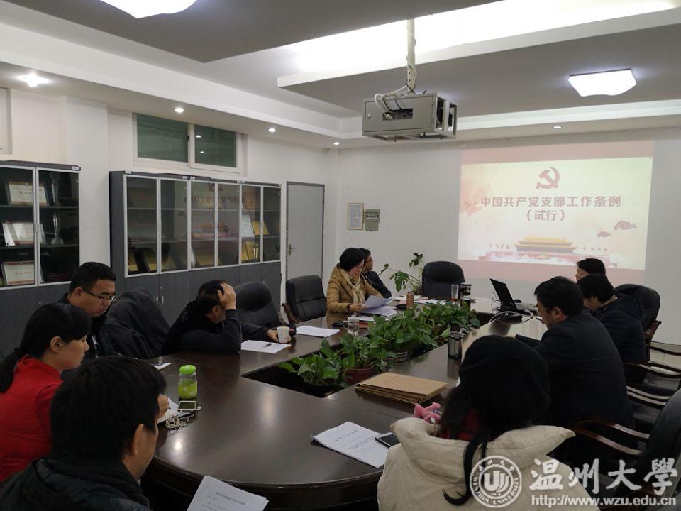 12月13日上午,3044am永利集团3044noc在2B216召开党总支中心组理论学习(扩大)会,专题学习中共中央印发的《中国共产党支部工作条例(试行)》。学院党政班子成员、总支委员、各支部书记参加学习。会议由学院党总支书记张丽萍主持。 张丽萍书记组织大家学习了《条例(试行)》内容,她交流阐述了《条例(试行)》颁布的重大意义,全面讲解了贯穿《条例(试行)》的基本精神。从《条例(试行)》的总则、组织设置、基本任务、工作机制、组织生活、党支部委员会建设、领导和保障等方面梳理了《条例(试行)》的重点内容。 《中国共产党支部工作条例(试行)》以习近平新时代中国特色社会主义思想为指导,既发扬我们党长期积累的党支部建设宝贵传统,又体现党的十八大以来基层创造的好做法好经验,规定明确、符合实际。制定和实施《条例(试行)》,是推动全面从严治党向基层延伸的重要举措,为新时代党支部建设提供了基本遵循,对加强党的组织体系建设,全面提升党支部组织力、强化党支部政治功能,巩固党长期执政的组织基础,意义十分重要。 张丽萍书记强调,学习贯彻《条例(试行)》一要提高政治站位,认清大抓党支部建设的重要性;二要把握要求,围绕提升党支部组织力、战斗力,强化政治功能,加强支部建设;三要建立标准体系,提升党支部的标准化、规范化建设。 根据总支工作安排,下一步各党支部要进一步开展学习《条例(试行)》活动,持续学习贯彻《条例(试行)》精神。