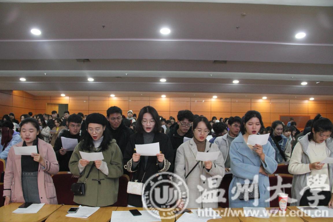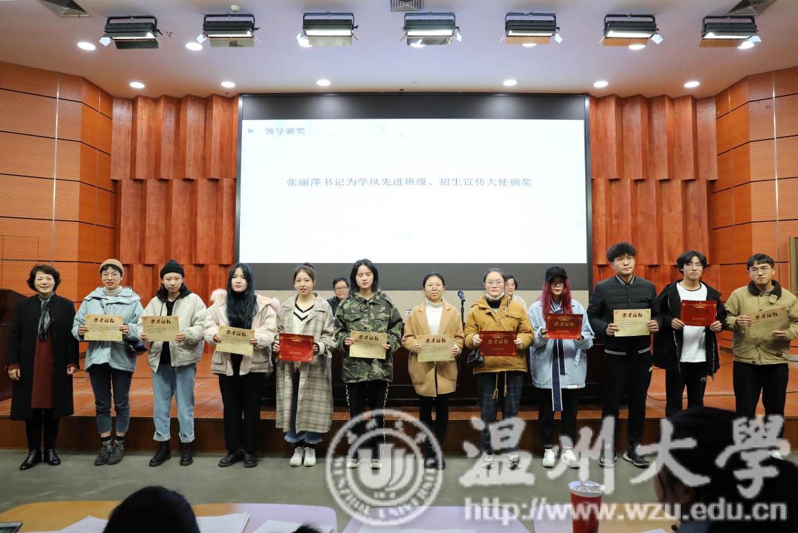 12月26日下午,3044am永利集团3044noc2018-2019学年第一学期期末考风动员大会在雁山厅举行。参加本次会议的有3044am永利集团3044noc党总支书记张丽萍老师、3044am永利集团3044noc副院长谢子静老师、3044am永利集团3044noc党总支副书记杨振海老师,还有17级和18级部分班级的同学。 大会之初由学生科李雪涛老师汇报本学期学风考勤情况。李老师以年度数据、迟到数据、旷课数据、晚自习数据全面总结了本学期美院考风考勤情况。紧接会议进行第二项议程学风表彰。由学风纪检部部长宣读本学期优秀纪检委员、学风先进个人以及班级名单。接着,学生会主席陈晨宣读本学期招生宣传优秀宣传大使、艺术团优秀团员表彰决定。院领导为获奖同学颁奖以示鼓励。随后由全体学生宣读《诚信考试承诺书》并签字承诺。 会议进行最后一项议程,由杨振海副书记作考风动员讲话,老师再三强调考风考纪的重要性。并为同学讲解到如有作弊学校对其处理的严重性,不仅仅是同学想象的那样简单会影响其一生。最后杨振海副书记对同学们进行了积极鼓励,相信大家都能成为一名诚实守信的大学生。 本次大会肯定了该学期各班同学的努力成果,强调了临近期末的考风纪律,为同学们建立优良的学风考风起了积极引导作用。相信在我们的共同努力下美院的学风考风建设将会越来越好。