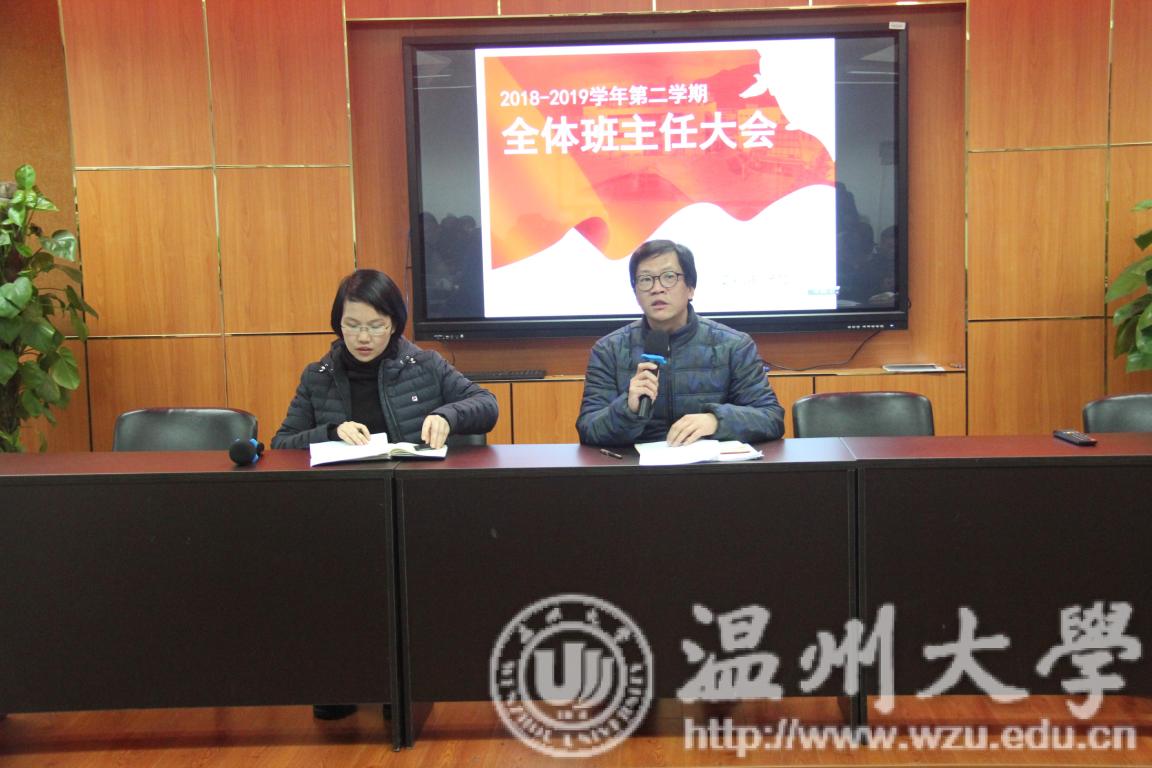 新学期,新风貌。为进一步加强班级建设,增强班主任工作的主动性,促进学院德育工作全面开展,2月27日下午,3044am永利集团3044noc在2B4001会议室召开了新学期班主任工作会议。 会上,学生科叶筱卉老师对开学初班主任基础工作做了安排部署。开学初,班主任老师要召开本学期第一次主题班会,深入了解并掌握学生思想、学习、生活等方面的情况,加强班集体建设,营造新学期浓郁的学习氛围,善于利用学工系统并做好数据维护;毕业班班主任老师须重点做好未返校毕业生的安全教育工作,毕业班班主任还要认真做好毕业生就业指导与服务工作,尽早达成就业意向。叶老师还通报了学生返校情况,并就上学期“优秀学生干部”和“工作积极分子”评选结果向班主任老师征求意见。 学院党总支副书记杨振海强调,班主任老师身兼多职工作在育人的第一线,为学院德育工作做出了很大贡献。本学期班主任老师们要重点做好三方面工作:一是在大数据时代要利用好学工系统的各种数据库开展育人工作;二要重点关注和帮扶心理健康和学业困难学生;三是交通安全、财产安全和防诈骗等安全教育要常抓不懈。