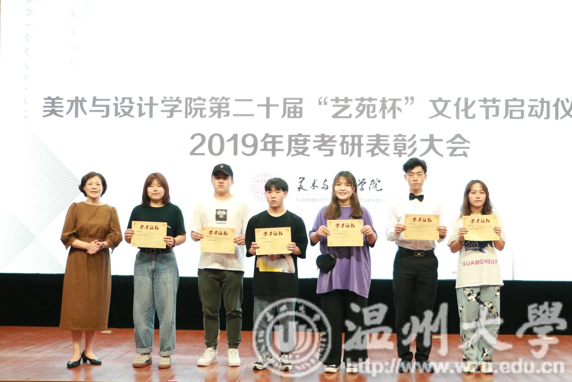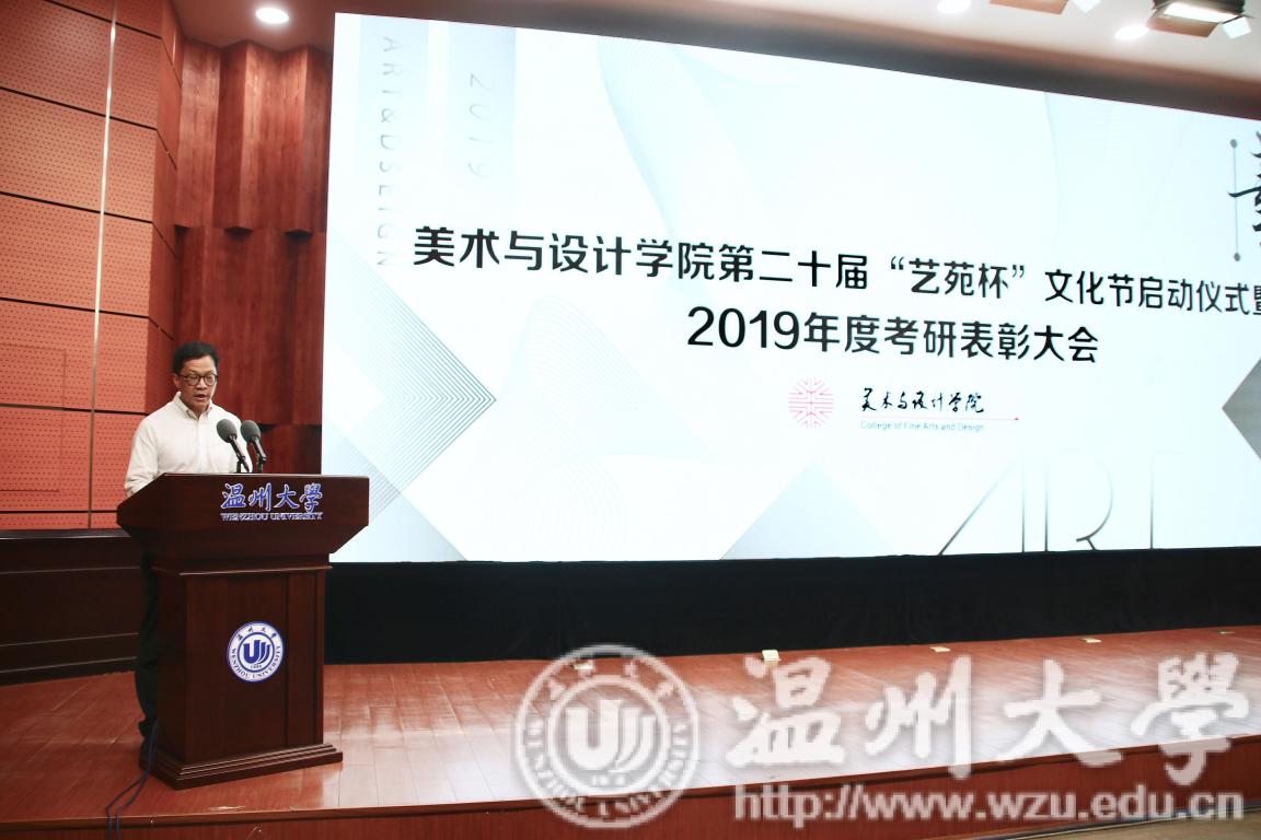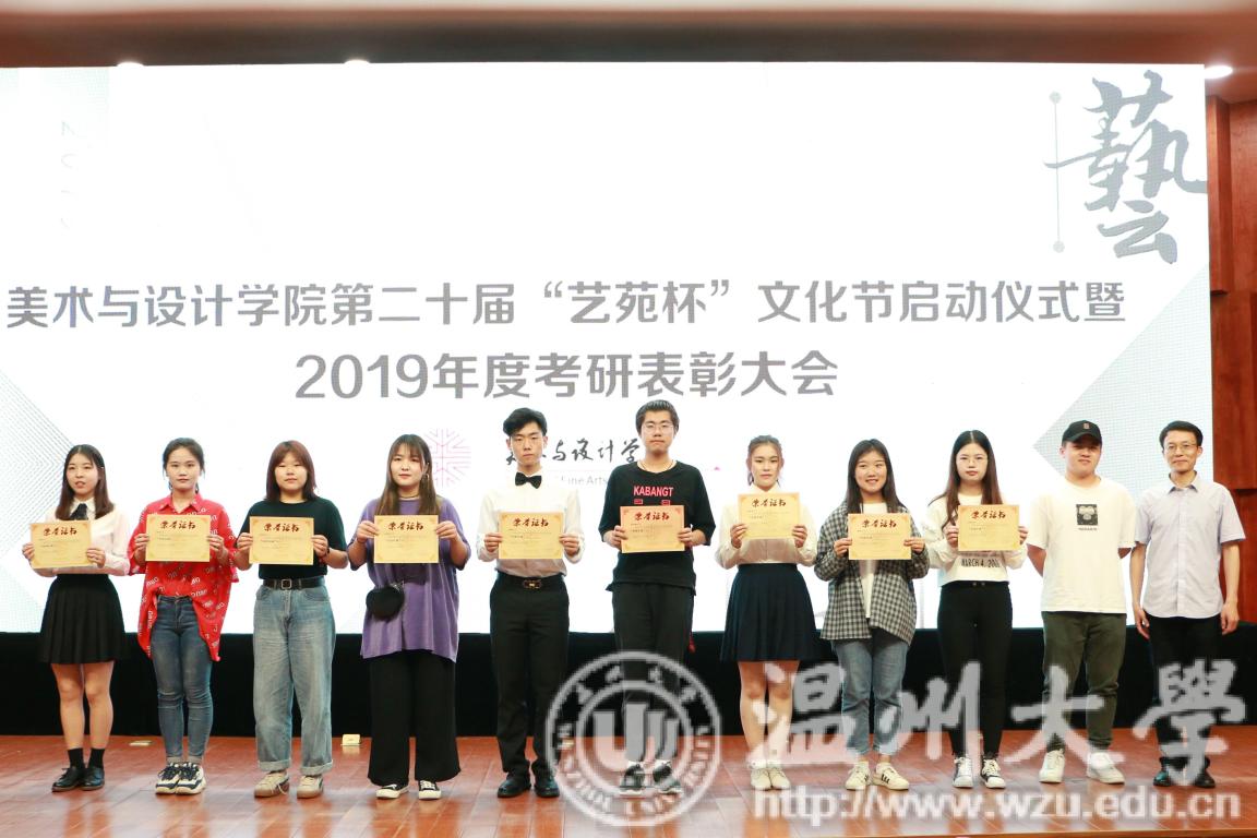 2019年4月24日下午,3044am永利集团3044noc第二十届艺苑杯文化节启动仪式暨2019年度考研表彰大会在岩松堂雁山厅顺利举行。莅临本次启动仪式的领导有校党委宣传部副部长冯方盛,校教务处副处长胡瑜,校学工部副部长、学生处副处长高红星,校就业处副处长应中,校团委副书记魏一,超豪学区党委副书记李祖祥,3044am永利集团3044noc院长李运河,党总支书记张丽萍,副院长张晓剑。参加本次活动的还有3044am永利集团3044noc17、18级同学。启动仪式由美院党总支副书记杨振海主持。 本届“艺苑杯”文化节的主题“艺梦为马·不负韶华”源自海子的著名诗篇《以梦为马》,寓意美院学子将艺路梦想作为前进的方向和动力,在有限的年华里为梦想去拼搏。系列活动包括纪念“五四运动100周年”;传承中华优秀传统文化;“融艺优品”创新创业;“艺家人”青年志愿服务;“毕业季”;纪念“建国70周年”等6大篇章共34个子活动。 启动仪式的开场是“五四”主题诗朗诵《青春的火焰》。充满爱国激情的诗歌表达了对100年前五四运动的深切赞颂,激昂的文字让同学们更深切体会到了五四运动的爱国主义精神内涵,进一步增强了同学们的时代责任感和使命感。 张丽萍书记为启动仪式致辞。张书记回顾了“艺苑杯”文化节自2000年创办以来不断发展壮大的历程。“艺苑杯”文化节不仅营造了积极向上、健康文明的校园文化氛围,更成为同学们在实践中锻炼自我成长才的重要平台。张书记鼓励同学们积极参加到“艺苑杯”文化节各项活动中,用激情去创造,用行动去证明,用精品去展现,共同谱写青春绚丽多彩的乐章。 仪式最后,与会领导上台共同启动3044am永利集团3044noc第二十届“艺苑杯”文化节。 会议第二项议程是学风表彰。大会宣读了2018年度3044am永利集团3044noc“五班十星”名单和2019年度3044am永利集团3044noc“考研奖学金”获得者名单。2017-2018学年校级学习标兵陈晨,2019年度美院“考研奖学金”获得者代表15服工班杨怡洁、15美术学一班聂枭雄分别做学习和考研经验分享。2019年3044am永利集团3044noc共有16人考取研究生,16人中有5人被浙江理工大学录取、6人被3044am永利集团3044noc录取、1人被杭州师范大学录取,还有4人被国外的大学录取。与会领导为他们颁发了奖状和证书并合影留念。 随后,李运河院长作考研动员讲话。他指出了本科阶段学习与研究生阶段学习的不同,并引用毛泽东、曾国藩、习近平总书记等名人轶事鼓励同学们以考研成功的学长学姐为榜样,树立以学习为本的理念,任何时候都不要放弃学习,多读书,读好书,勤实践,多游学,珍惜大学时光,珍惜青春韶华,学好专业知识,实践专业技能,强健体魄,刚强意志,努力奋斗实现人生梦想。 最后,为迎接祖国70华诞,全体师生手中挥动国旗,共同献唱《我和我的祖国》,大会圆满结束。