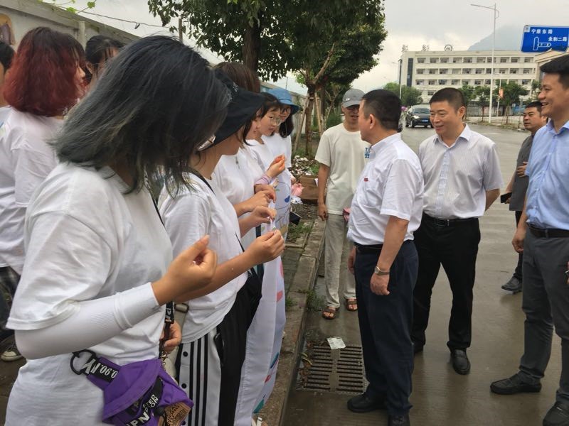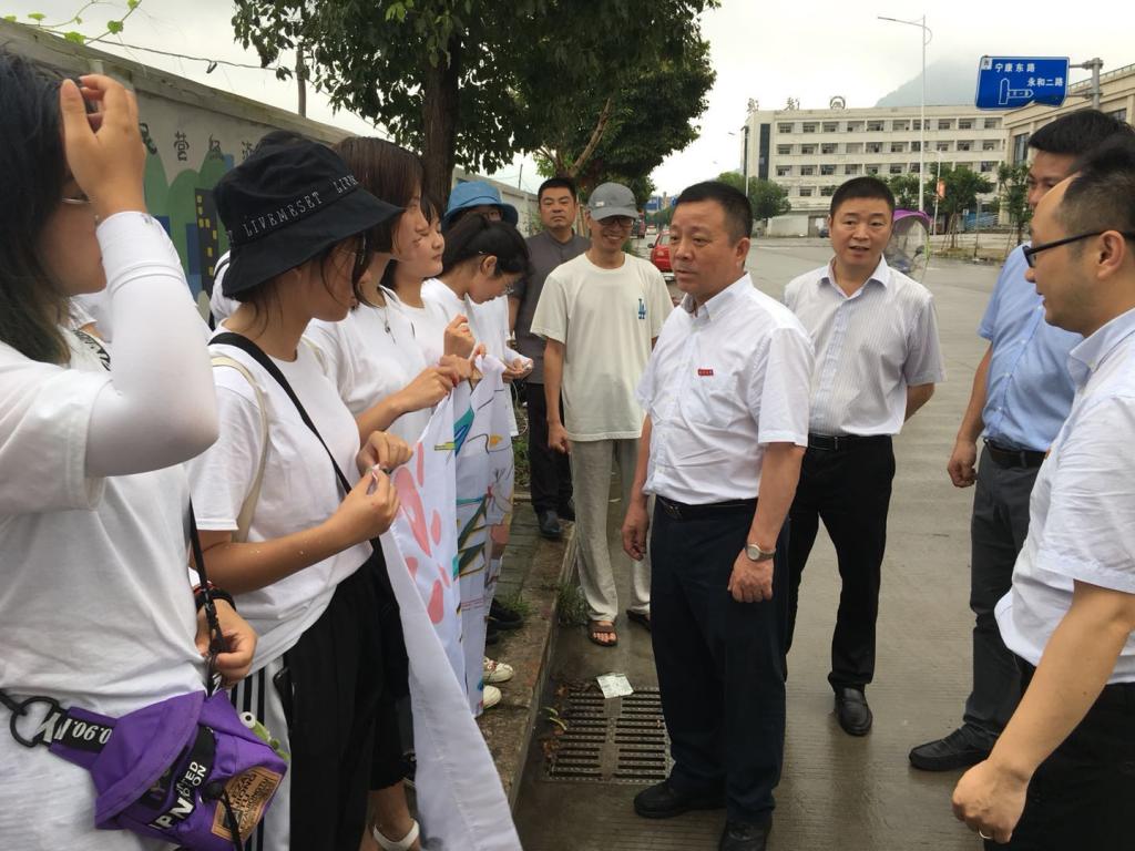 7月14日上午,3044am永利集团3044noc党委书记谢树华,乐清市委常委、宣传部部长范晓东一行慰问正在乐清市宁康东路金海湾花苑附近开展“艺绘”暑期社会实践活动的永利集团官网师生,党校办主任蔡联群、3044am永利集团3044noc党委书记叶正飞、副书记杨丽君、校团委副书记易招娣、副书记丁强、党校办督办科科长陈赞安、乐清市城东街道办事处相关同志陪同慰问。