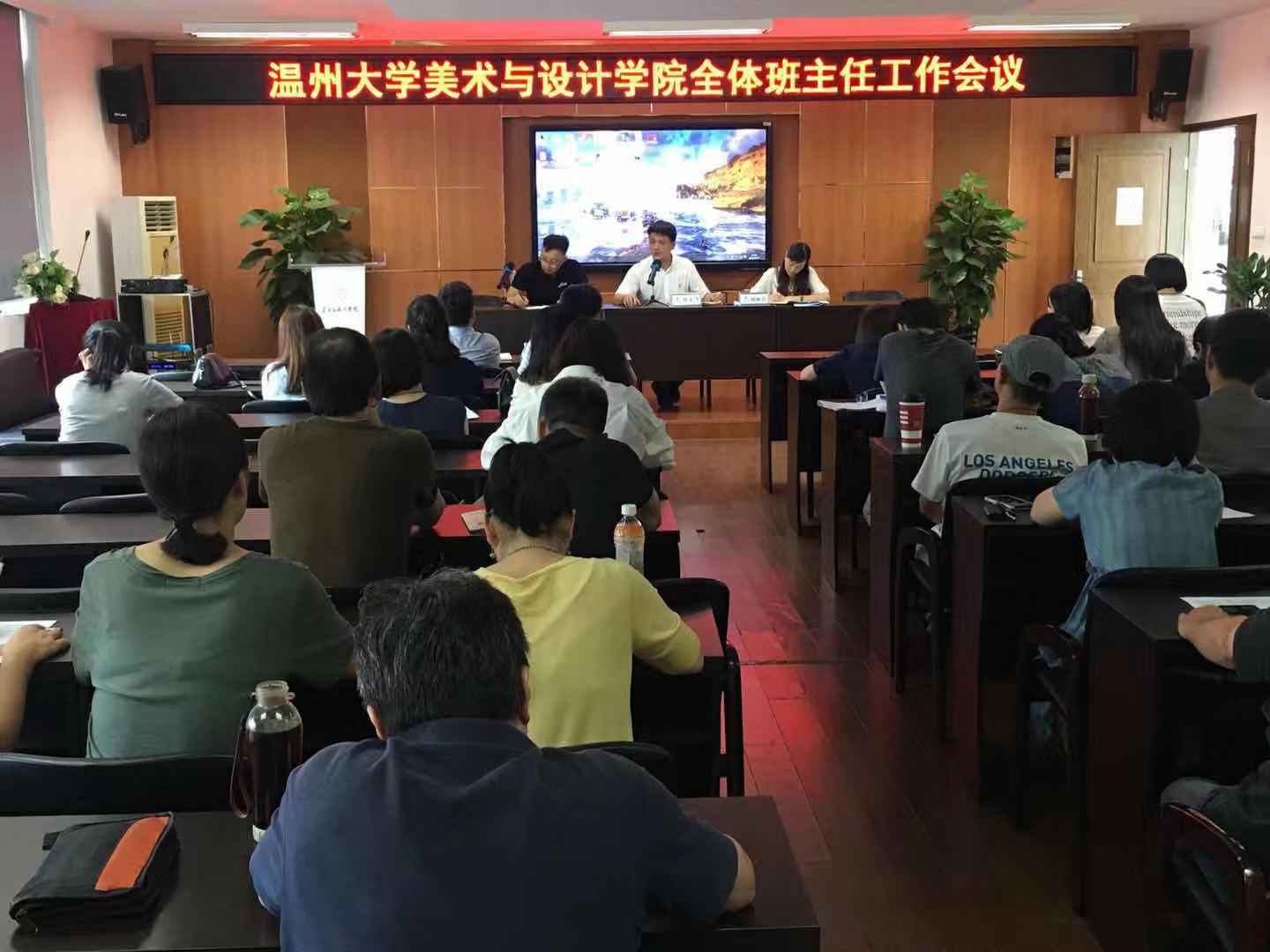 2019年9月10日下午,美院2019/2020学年第一学期班主任工作会议在2B4001会议室召开。学院党委书记叶正飞、副书记杨丽君、全体辅导员以及16、17、18级班主任共50余人参加了会议。