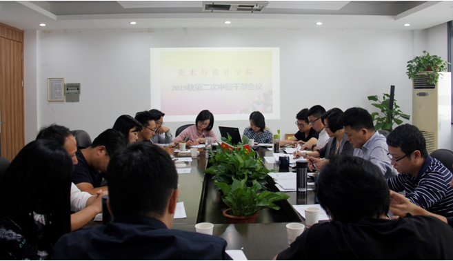 10月16日,2019秋3044am永利集团3044noc第二次中层干部会议在2B216会议室召开,党委书记叶正飞、副院长胡文超、顾任飞以及全体中层干部出席会议,会议由院长谢子静主持。 首先,针对开学初中层干部调研会上各系主任、教研室主任及专业负责人提出的九大类二十五条意见建议,学院各分管领导分别在人才引进、国际合作、教学计划、学生竞赛、学科建设、设备和教室配置等方面,在前期与学校各部门的积极沟通、争取政策支持的基础上作逐条逐一答疑。 随后,胡文超副院长就2019级人才培养方案的修订工作作重点推进,强调学校本次人才培养方案修订工作的要求及方案修订的重要性和时间紧迫性,要求全体系主任、教研室主任认真做好方案修订工作,精心凝练精品课程,打造学院一流课程一流专业;顾任飞副院长针对本学期研究生教学、硕导遴选、科研及实验室工作、设备及耗材采购等方面工作做重点筹划和部署,要求全体中层干部重视研究生教学工作,并积极申报硕导资格,充实壮大学院硕导队伍。 最后,谢子静院长做总结讲话,学院要始终坚持“以本为本”强化教学质量,通过引进优秀人才补充和改善师资结构,通过内部打造和外部支持并举推进学科和专业建设,通过拓展国际合作交流推动师生的国际化视野和专业发展,通过大力推动学院继续教育工作实现学院在立足温州、服务地方上展现温大、美院作为。谢院长要求各系部、科室、教研室认真组织落实主题教育各项内容,切实做到认真学习,扎实提高思想政治素养和专业能力素养,将学院本学期各项工作任务层层落实到各个专业、教研室及每个教师,要求全体教职工共同参与,勇于“担当”,与学院发展携手并进。