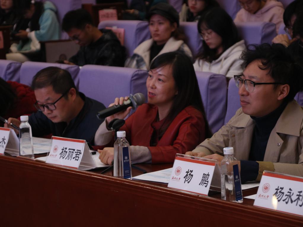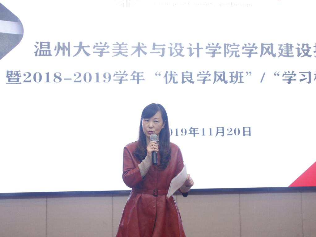 最后,学院党委副书记杨丽君老师对所有参赛班级和个人给予了积极的肯定。同时,杨丽君老师对美院学子提出了三点期许:第一,遵规守纪,做优秀温大人;第二,扎实学习,做优秀美院人;第三,积极进取,做最优秀的自己。相信各位同学将以此次参赛选手为榜样,严于律己,积极向上,相信我们美院也会如杨书记所言,莘莘学子成栋梁,芬芳园丁名四方,共创美院新辉煌。