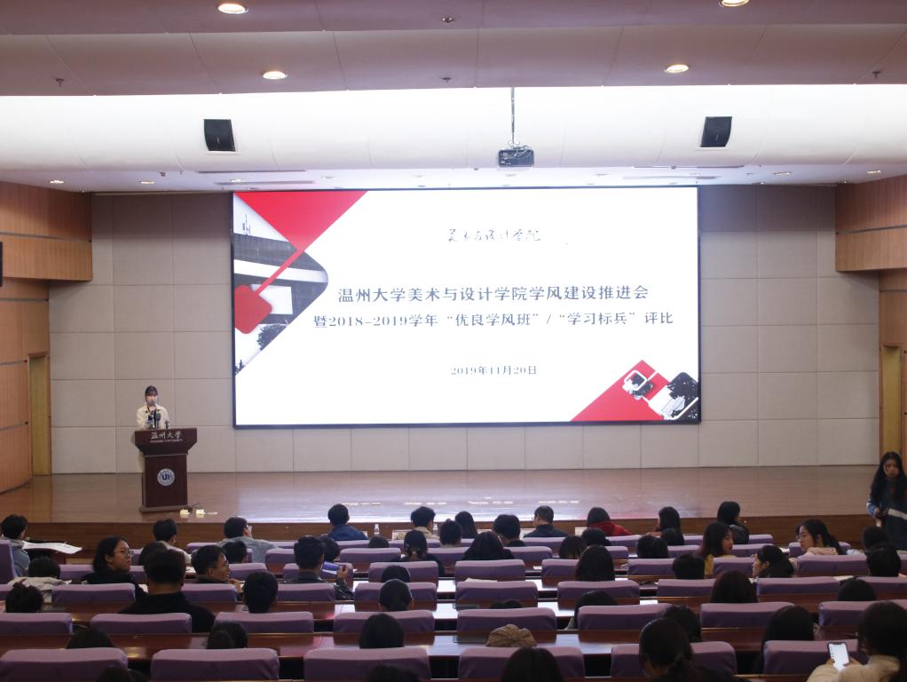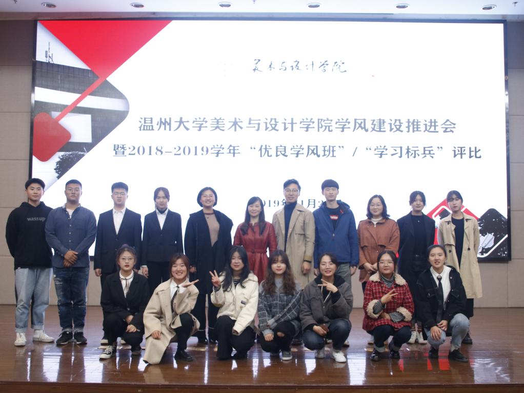 为加强美院学风建设,2019年11月20日晚,3044am永利集团3044noc学风建设推进会暨2018-2019学年“优良学风班”和“学习标兵”评比活动于育英图书馆报告厅顺利举行。出席本次评比活动的评委有3044am永利集团3044noc党委副书记杨丽君老师,学工办主任杨鹏老师,教学科阳自杰老师,辅导员杨永利老师,学生会主席祝晴同学以及各班学生评委。 本次共有7个班级和10位选手参加“优良学风班”及“学习标兵”评比。首先进行的是“优良学风班”评比,各参赛班级从学习风气纪律、班级特色、班级荣誉和团日活动等多个方面,向我们展示了一个个团结友爱、积极向上、学习氛围浓厚的大家庭。紧接着是学习标兵评比,有了前面优良学风班的激烈竞争,各位学习标兵参赛选手也毫不示弱。每位参赛同学都纷纷展示了个人所长、科研成果、社会活动和各项荣誉,并表达了自己对未来的期望。各位学霸们的精彩展示,让现场发出一阵阵热烈的掌声,他们让我们感受到了美院优秀学子们锲而不舍,一丝不苟的学习态度,勇往直前的拼搏精神和一颗温暖善良的内心。 最后,学院党委副书记杨丽君老师对所有参赛班级和个人给予了积极的肯定。同时,杨丽君老师对美院学子提出了三点期许:第一,遵规守纪,做优秀温大人;第二,扎实学习,做优秀美院人;第三,积极进取,做最优秀的自己。相信各位同学将以此次参赛选手为榜样,严于律己,积极向上,相信我们美院也会如杨书记所言,莘莘学子成栋梁,芬芳园丁名四方,共创美院新辉煌。