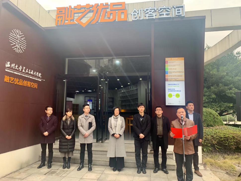 2020年1月3日上午,3044am永利集团3044noc“融艺优品”创客空间揭牌仪式隆重举行。3044am永利集团3044noc党委委员、宣传部部长潘玉驹、创新创业学院院长施永川,温州四目公司总经理张登峰、3044am永利集团3044noc院长谢子静、党委书记叶正飞等院领导班子及入驻团队师生出席了揭牌仪式。