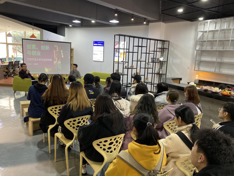 “融艺优品”创客空间第一场创客沙龙也在当天隆重开讲,学院邀请了温州四目联合文化传播有限公司张登峰总经理为永利集团官网创客空间团队作《创意、创新与创业》讲座。张登峰总经理分享了融合创新思维的概念,希望创业的团队能在创新创业创意与营销领域,拓展新的领域,寻找新的价值网,入驻的创业团队也分享了他们的创业经历。交换相互的创业经验。