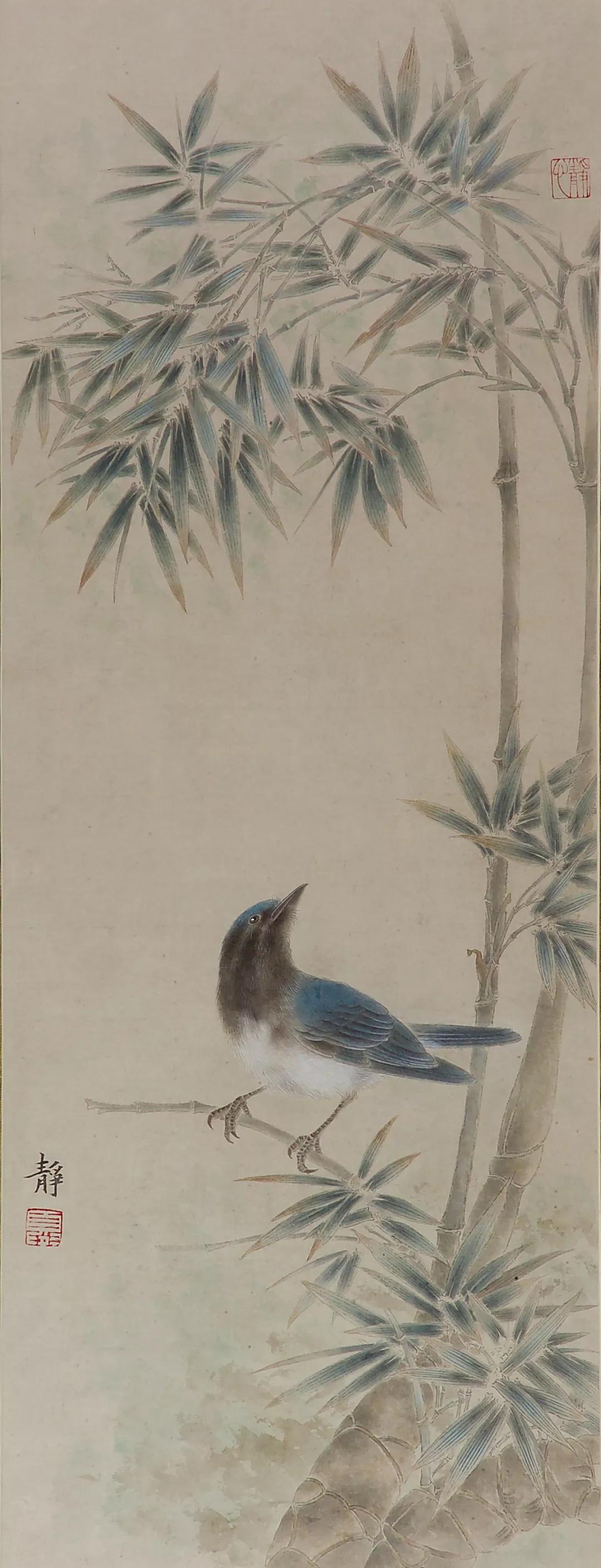 谢子静专攻中国花鸟画,对大自然的一花一鸟,一草一石均投以极大的热情与兴趣。她时时被这些物件的优美情态所感染,情急之下便命笔记写,反复品味,不断揣摩,并联想前人的艺术表现,使这些生动可爱的对象,升华为初步的艺术形象存记于脑海之中,这为她的艺术创作提供了丰富的自然原始素材。平时,除了虚心跟随名家学习外,还十分重视研习前人的传统艺术表现方法,尤其是宋人的花鸟画,使她产生了浓厚的兴趣。在临摹经典作品时,不仅力求神貌皆合,并把精力集中在探讨其原因、寻找其规律、挖掘其奥妙之上。从取材、构图、创意、表达等多方位加以硏究,常常以一个探宝者的心境去逐一玩味,直到有所领悟。这种科学而严谨的治学态度,奠定了创作的坚实基础。