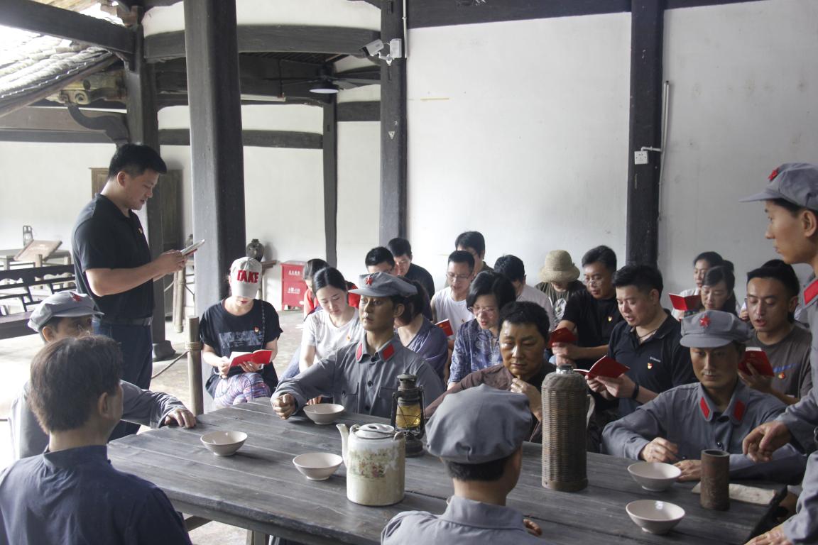 为迎接建党99周年,巩固“不忘初心、牢记使命”主题教育成果,6月20日上午,美院教工支部党员追寻红色足迹,来到永嘉红十三军旧址及革命烈士纪念碑前,开展迎“七一”主题党日活动。纪念碑前合照全体党员脱帽默哀致敬今年是建党99周年,也是中国工农红军第十三军成立90周年,在烈士纪念碑前,全体党员脱帽致敬,向为争取国家独立、民族解放和人民幸福而英勇献身的革命先烈们致敬。随后,在党委书记叶正飞的带领下,全体教工党员面对党旗庄严宣誓,重温入党誓词。参观红十三军纪念馆在红十三军纪念馆里,全体党员仔细聆听红十三军历史介绍,认真观看相关图片、实物和文献资料等,追忆党的奋斗历程,感受红色文化氛围,接受革命历史教育。共同诵读《中国共产党章程》在红十三军旧址的会议室,在叶正飞书记的带领下,全体党员共同诵读《中国共产党章程》总纲部分。诵读中,党员们严肃认真,声音洪亮有力,充分表达了对党章的尊崇和敬畏之心。最后,叶正飞书记以学习省委第十四届七次全体(扩大)会议精神为题为全体党员上专题党课,叶正飞书记指出,此次全会是贯彻落实习近平总书记赋予浙江“努力成为新时代全面展示中国特色社会主义制度优越性的重要窗口”新目标新定位召开的一次重要会议。全院党员教师要深刻领会把握4个维度的重要详述、6个方面“着力点”的指示要求、10个方面“重要窗口”的丰富内涵和13项“重大标志性成果”的目标任务,增强“重要窗口”意识,树立“重要窗口”担当,切实把贯彻落实省委全会精神与学院中心工作相结合、与主责主业相融合。全体教工党员合照此次主题党日活动,通过寻访革命足迹、感悟红色文化、领会全会精神,进一步坚定了全院教工党员“不忘初心、牢记使命”的信心,坚定了全院教工党员为学校建设高水平特色鲜明的教学研究型大学贡献力量的决心。