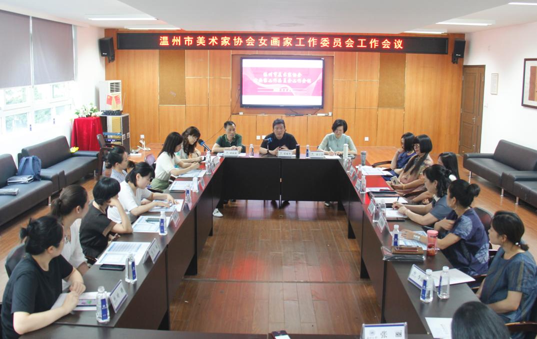 2020年8月7日下午,温州市美术家协会女画家工作委员会工作会议在永利集团官网举行。中国美协理事、市美协主席张成毕出席会议。永利集团官网党委书记叶正飞、校工会副主席陈文远到会祝贺,叶书记致辞并介绍了美院的办学情况。出席会议的还有市美协秘书长潘新新、副秘书长金婧婧、常务理事叶海华等。会议由市美协副秘书长、女画家工作委员会秘书长林翼如主持。