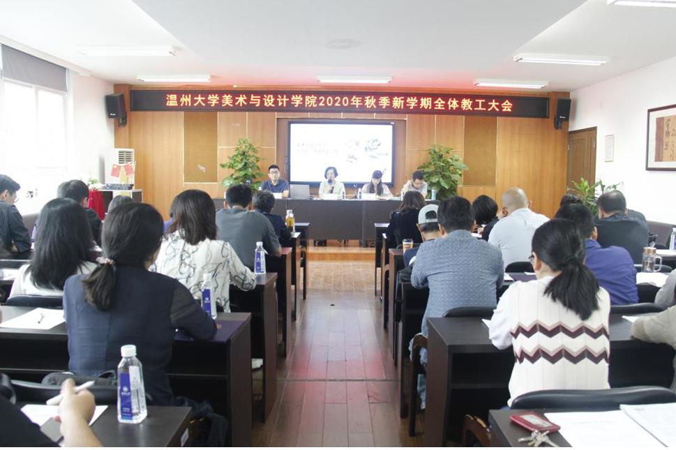9月23日,在2B4001召开3044am永利集团3044noc2020年秋季新学期全体教工大会,院长谢子静、党委副书记杨丽君、副院长胡文超、副院长顾任飞等出席会议,全体教职工参加会议。会议由杨丽君副书记主持。 会上,杨丽君副书记传达了2020年暑期党委理论学习中心组(扩大)学习会上校党委书记谢树华《锚定发展目标、深化治理改革、激发主体动能,在新起点上努力推进学校实现高质量发展》重要讲话和校长赵敏《科学谋划、乘势而上,以“重要窗口”标准奋力推进高质量发展》“十四五”规划专题报告的主要精神。 随后,杨丽君副书记介绍新教师个人情况,并宣布新教师的结对工作导师。谢子静院长为新教师佩戴校徽、赠送入职礼盒,胡文超副院长为担任新教师工作导师的教师颁发聘书。朱国平老师代表新教师发言,衷心感谢学院领导的关怀和帮助,并表示,学院为新教师提供了广阔的发展空间,未来也要为美院的建设不遗余力地去奉献。 紧接着,杨丽君副书记、胡文超副院长、顾任飞副院长分别围绕着学院下半年的重点工作进行了具体部署。 最后,谢子静院长作学院工作报告。首先,她充分肯定了在疫情之下,学院各项工作能稳步推进,主要工作取得了显著成绩,并向辛勤付出的教职工表示感谢。随后,谢院长作学院“十三五”总结和“十四五”发展规划的专题报告。她回顾了学院在“十三五”期间取得的成绩,也指出了存在的问题和困难。针对学院发展面临的机遇与挑战,她提出了学院“十四五”发展时期人才队伍建设、学科建设、专业建设、人才培养、科学研究、服务地方、国际合作、党的建设等八大方面的工作目标和具体任务,并要求全院教职工为实现“建设具有较强办学实力、特色鲜明的省内高水平艺术学院”的目标而不懈努力。最后,她对新学期的工作思路和重点工作作了部署。她提出,本学期学院要坚持全面从严治党,切实加强党的建设,围绕着“以本为本、科教融合,聚焦人才、内培外引,校地互动、服务地方,搭建平台、合作办学”,完成“优化人才队伍建设、做强专业建设、做特服务地方”三大目标,持续推进学院事业发展。