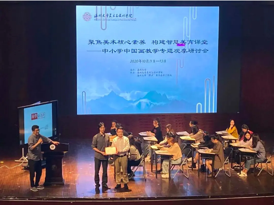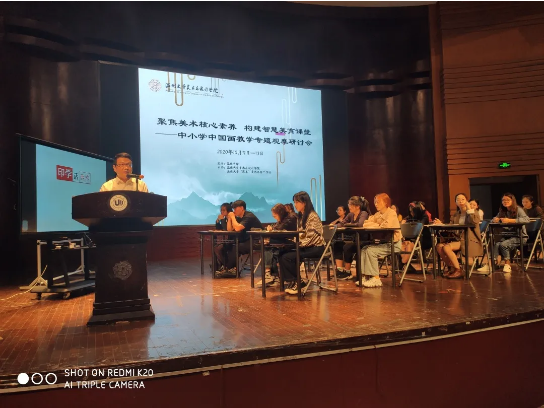 “画阑开处冠中秋”,桂子飘香美院传。2020年10月11日,聚焦美术核心素养,构建智慧美育课堂---中小学中国画教学专题观摩研讨会在在3044am永利集团3044noc南校音乐厅举行,研讨会安排了课堂教学展示,主题讲座,名师经验交流等环节,内容丰富、形式多样、深入探讨了美术教育当前所需要关注的美术核心素养以及对于中国画在课堂上的渗透和教法等教学问题。