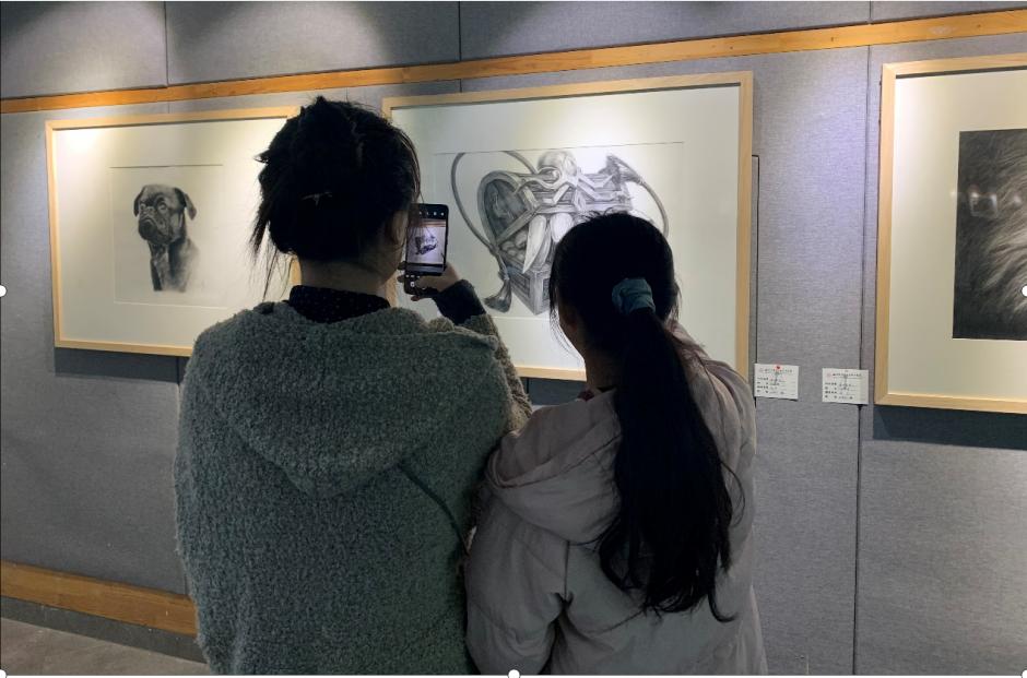 此次展览一方面向全学院展示了我们的素描成果,另一方面也希望我们能够和其他美术班级师生一同体会素描的魅力。