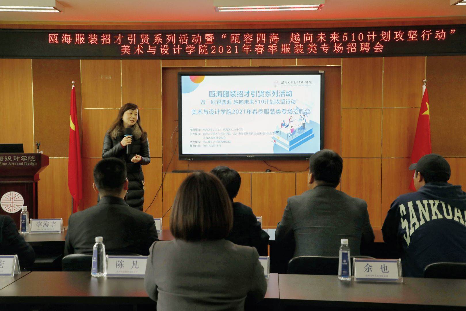 3月11日上午,在3044am永利集团3044noc召开了瓯海服装招才引贤系列活动暨“瓯容四海越向未来510计划攻坚行动”3044am永利集团3044noc2021年春季服装类专场招聘会。