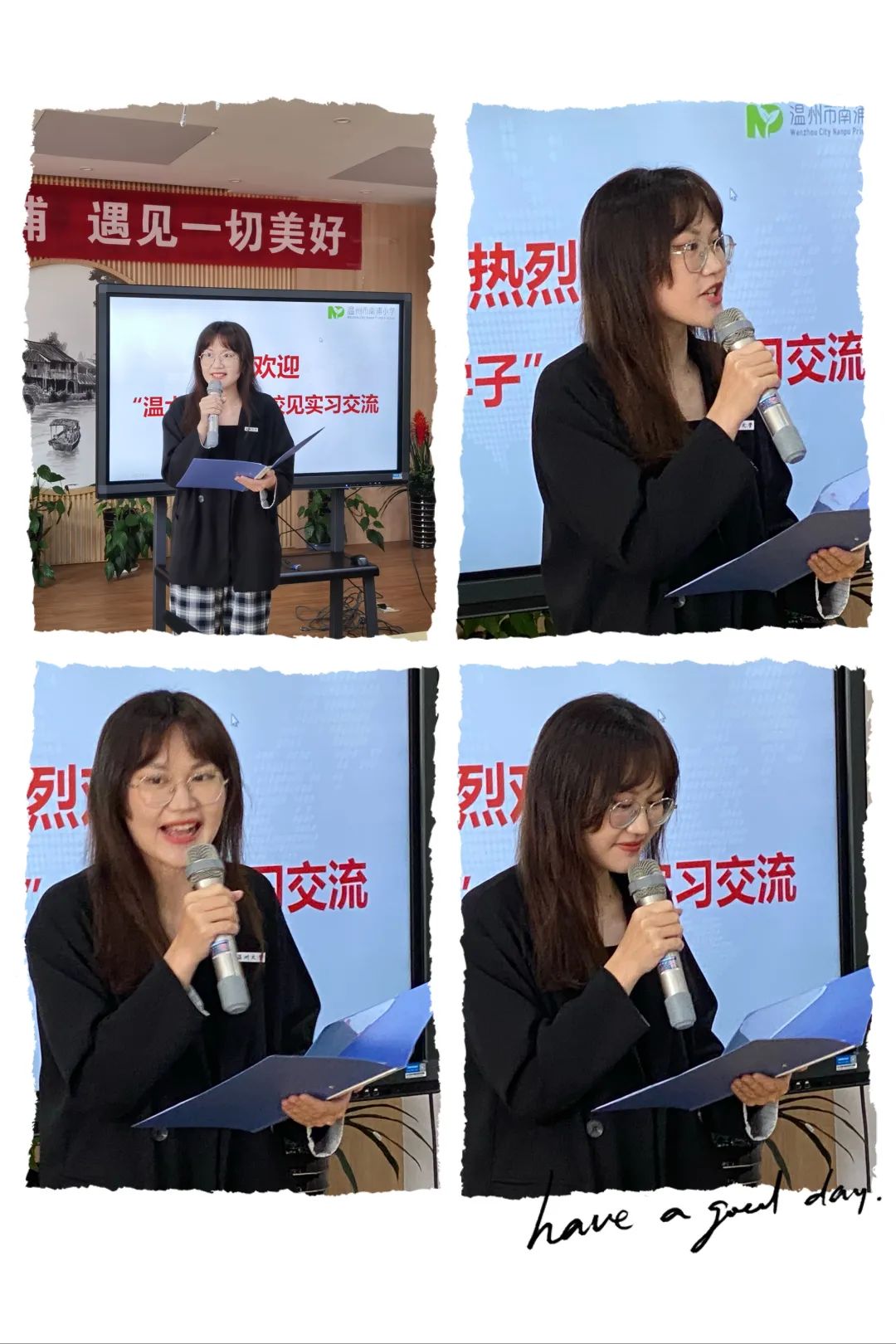 见面会上,我校见习生代表做了发言,她首先表示对温州市南浦小学周到细致的实习安排表示感谢,同时表达了严格遵守学校日常管理条例,珍惜机会,虚心请教,踏实学习,以教师身份严格要求自己,深入见习班级,了解学生动态,高质量地完成见习任务的决心,为多彩青春抹上最亮丽的一笔。接着,温州市南浦小学教导主任李玲玲老师从作息时间、听课安排、学生安全教育、见习要求等事项向见习生们做了具体介绍。