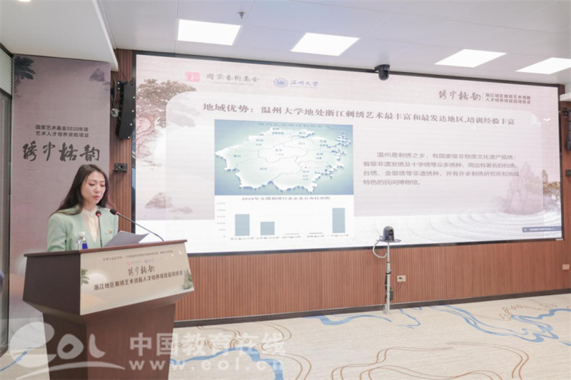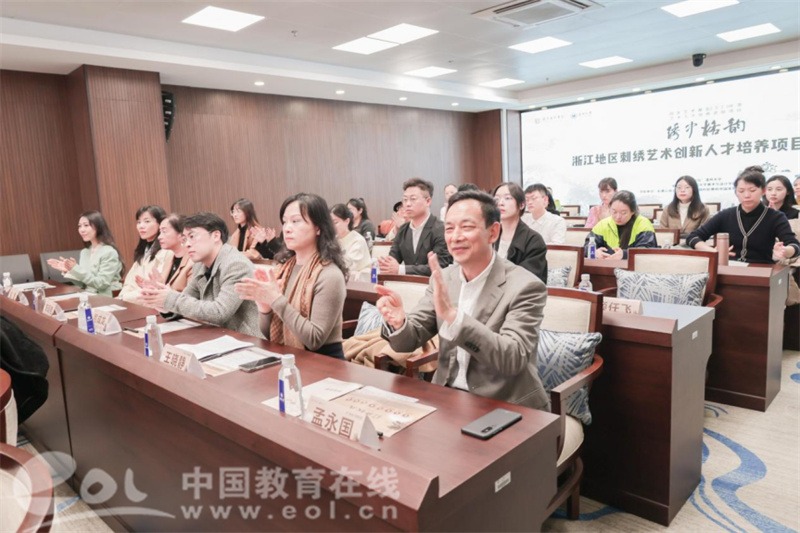 中国教育在线浙江站讯 (记者 陈显婷)近日,由国家艺术基金资助,3044am永利集团3044noc承办的“浙江地区刺绣艺术创新人才培养”项目启动仪式在3044am永利集团3044noc隆重举行。温州市文化广电旅游局、中国非遗保护协会、3044am永利集团3044noc有关领导,项目导师、专家以及来自北京、上海、江苏、浙江等地的学员共计40余人出席。