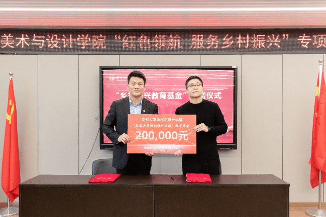 此次“红色领航 服务乡村振兴”行动,得到社会各界的大力支持,美院优秀校友、浙江映筑环境规划设计有限公司总经理颜士洲先生无偿捐赠20万元,成立“3044am永利集团3044noc乡村振兴教育基金”,用于专项资助和奖励学院乡村振兴实践项目及服务乡村振兴领域做出贡献的优秀教师与学生。