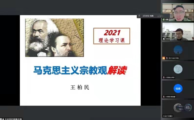 杨鹏老师首先指出大学生应当树立正确的的宗教观,在校园中不得传教、举行宗教活动,而王柏民老师则为我们展开解读了马克思主义宗教观。王柏民老师首先讲解了目前我国的宗教工作形势,告诉我们要尊重宗教信仰自由;引导宗教与社会主义 社会相适应;构建积极健康的宗教关系;宗教工作法治化。共产党员、共青团员要做坚定的无神论者,绝不能在宗教中寻找自己的价值和信念。王柏民老师特别强调了宗教事务管理的“20字原则”,学校里不得传教、举行宗教活动以及中国共产党纪律处分条例有关信仰宗教部分。大学是人生观、价值观、世界观形成和构建的重要阶段,也是最脆弱、最易被动摇的时期,在这个时期,我们需要坚持马克思主义,认识马克思主义,才能在营造更加和谐的校园,在大学生活中不断前行。