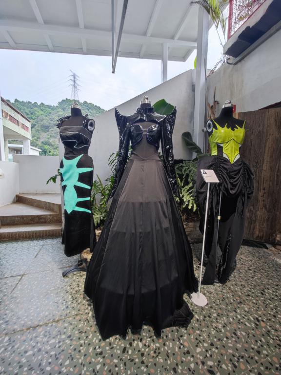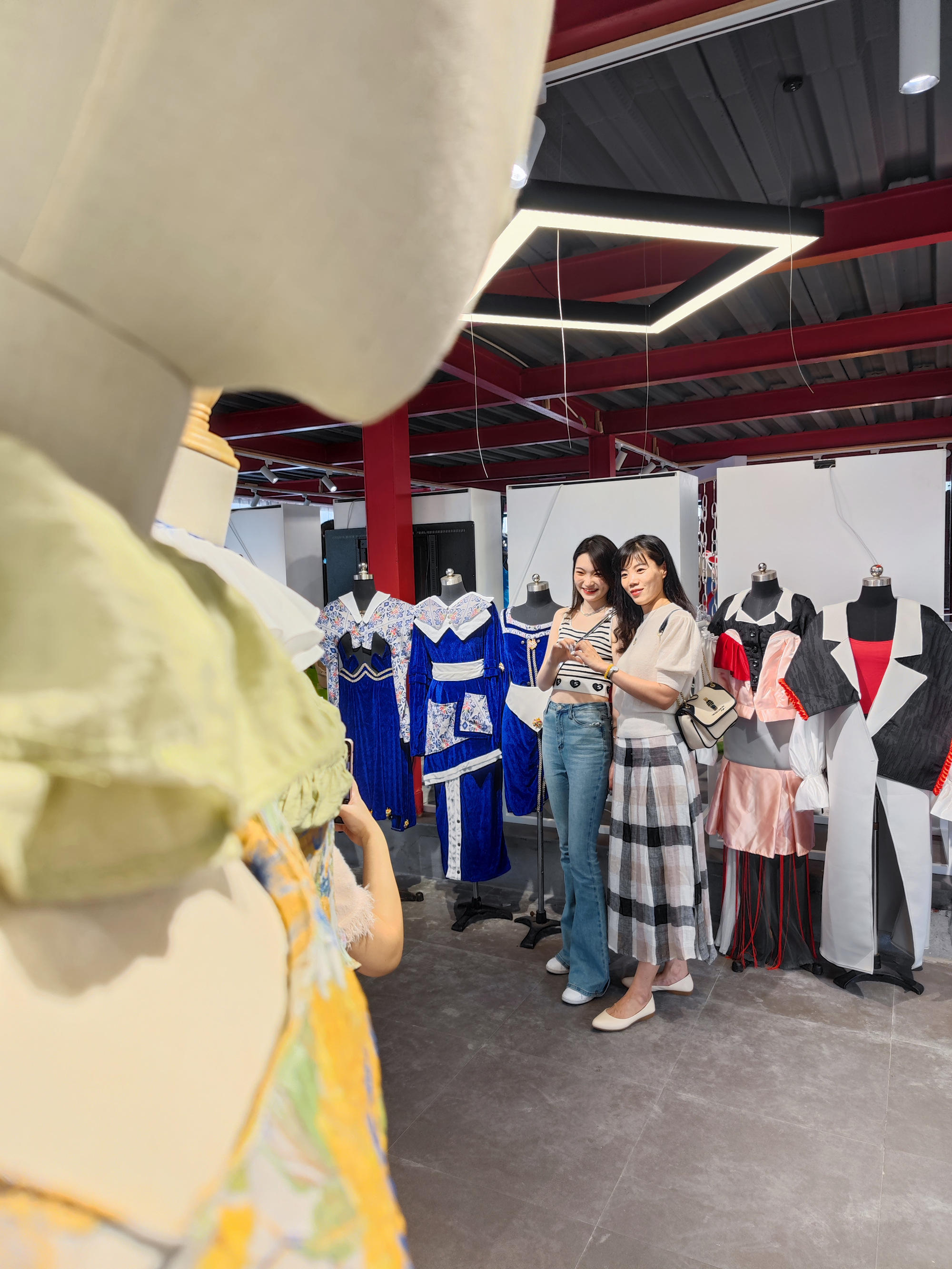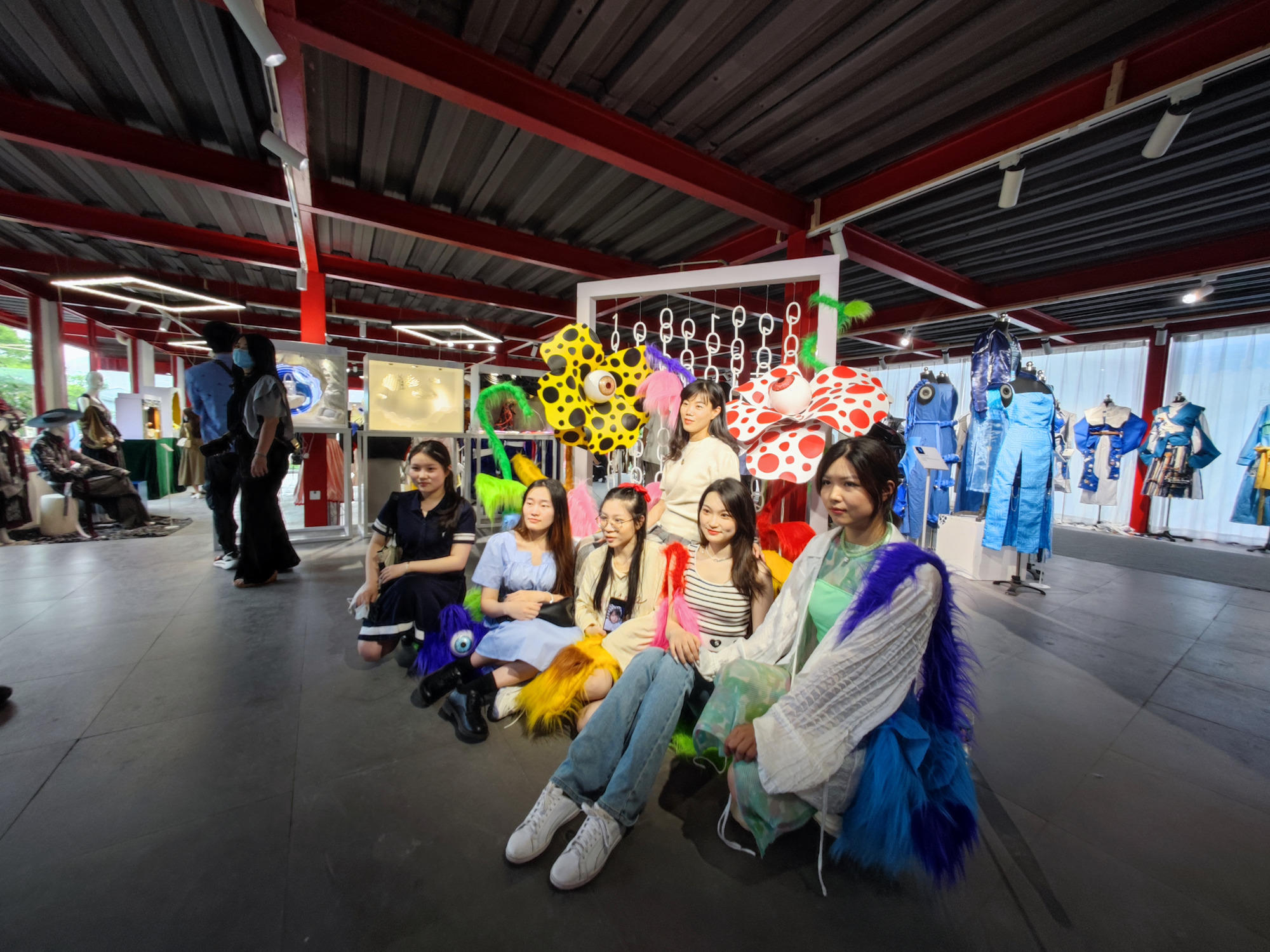 不少来参展的市民都在积极拍照,在丰富多彩的服饰之间摆出各种造型。一位来山根音乐艺术小村游玩的李女士说:“我是带孩子来山根玩,无意间发现今天这里有3044am永利集团3044noc毕业作品展,很惊喜,也可以让孩子从小就多接触一些艺术展览,培养审美。”