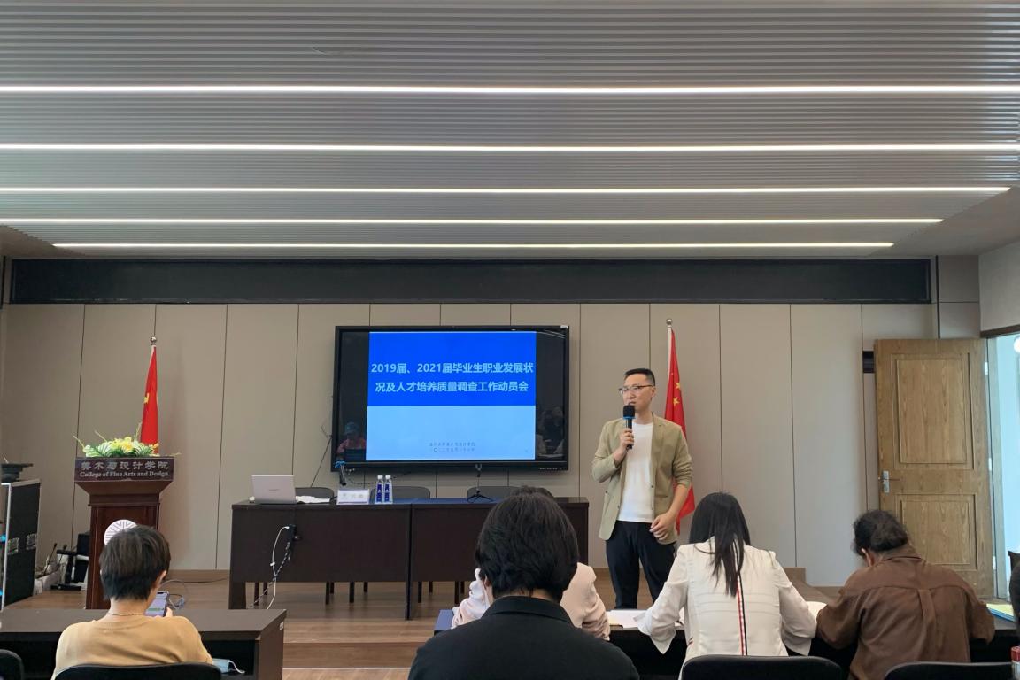 为切实做好2022年毕业生职业发展状况及人才培养质量跟踪调查工作,5月25日下午,3044am永利集团3044noc2019届、2021届毕业生职业发展状况及人才培养质量调查工作动员会议在2B4001顺利召开,学院党委副书记叶如芳、学工办主任杨鹏、学工办辅导员、2019届和2021届毕业生班主任参加会议,会议由学工办主任杨鹏主持。 本次会议邀请了校招生与就业处生涯教育科科长洪艳老师对毕业生职业发展状况及人才培养质量工作进行了解读,从答题率、就业率、创业率、升学率、薪资水平、总体满意度等方面提出具体工作要求,并对此工作要求和答题操作等进行了详细的讲解,让大家对该项调查工作有更充分的了解。会上,洪老师分享了去年的各项数据,强调找差距,抓落实,强化质量意识。同时,对2019届、2021届毕业生跟踪调查的注意事项进行了补充。 随后,服装设计与工程系高广明老师就去年服工专业的经验进行了分享。第一,要全员参与,分配指标。系主任、班主任、任课老师等全员参与,各自完成分配的指标。第二,要制定长期目标,认真教学。与学生建立良好的师生关系,关注学生动态,提高教育教学质量。第三,给学生明析专业未来,让学生了解就业前景,增强学生专业认知能力,着眼未来职业谋划。 然后,杨鹏老师分享了2022年毕业生职业发展状况和人才培养质量调查具体工作安排,主要从调查对象、调查时间、学院近三年毕业生职业发展与人才培养质量调查结果等方面分析了跟踪调查工作的总体情况,并强调了此次毕业生职业发展状况及人才培养质量调查工作的重要性。 最后,叶如芳副书记作总结发言。她指出,首先,全体老师要思想上要高度重视,将此项毕业生跟踪调查工作纳入常规工作。同时,要注意方式方法,做好毕业生的联络和通知,引导毕业生按照学校要求按时完成作答,反映真实情况。要尽可能地发动毕业学生积极参与,顺利圆满地完成本次毕业生职业发展状况及人才培养质量调查工作。