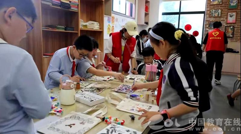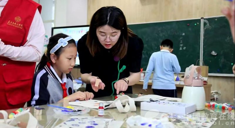 中国教育在线浙江站讯(记者 白菁洁)生动活泼的鹿形图案、各式各样的模戳印染、颜色跳脱的手工装饰......5月27日下午,在童画美育课堂上,3044am永利集团3044noc的党员志愿者们带领3044am永利集团3044noc城附属学校的小朋友们定制专属帆布包,提前过儿童节。
