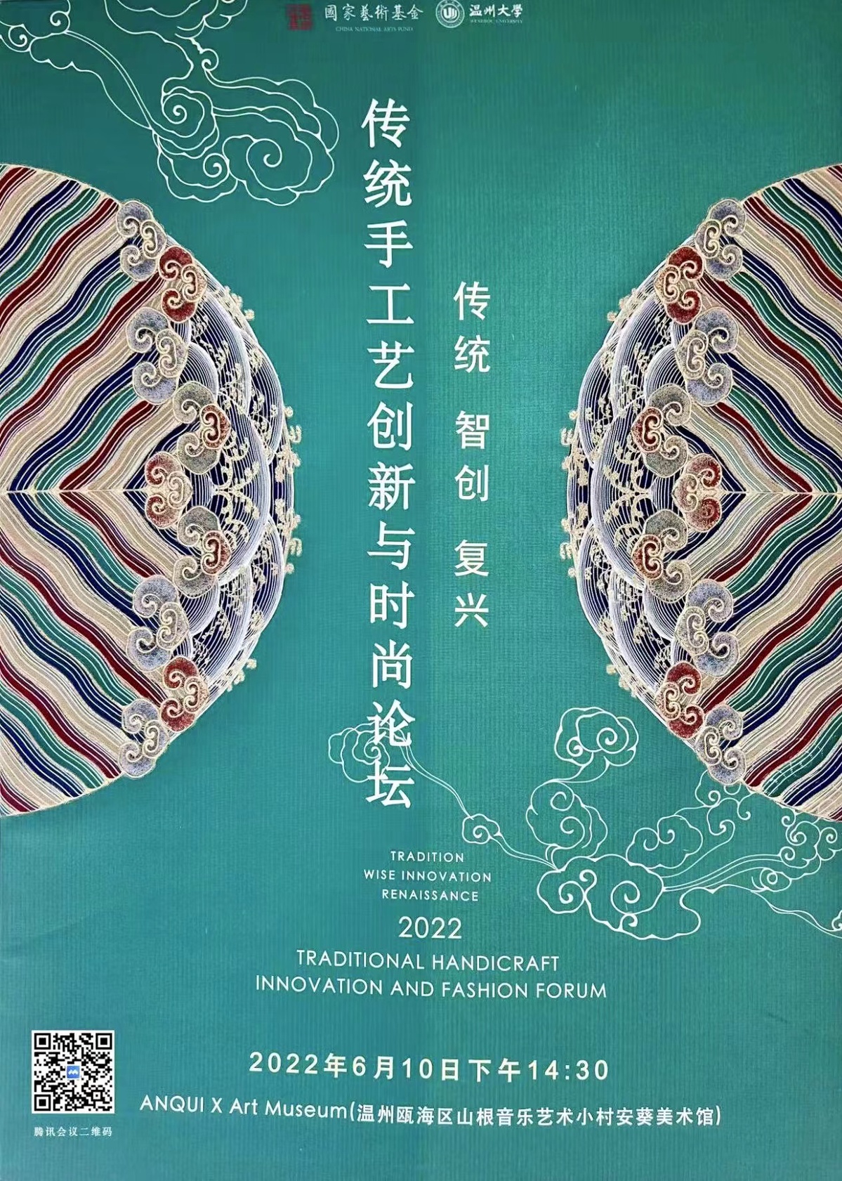6月10日下午,由国家艺术基金赞助,3044am永利集团3044noc承办,温州广电文化旅游局、3044am永利集团3044noc发绣研究院协办的《传统,智创,复兴--2022传统手工艺创新与时尚论坛》在Anqui x Art museum山根音乐艺术小村安葵美术馆举行。来自中国美术学院、中国艺术研究院、同济大学、浙江理工学院、等知名教授、刺绣专家、国家级、省级刺绣大师、浙江地区刺绣艺术创新人才项目组团队和学员,共同对浙江地区刺绣艺术学术研究、创新设计进行深度交流,并借此平台,打造展示和宣传浙江刺绣的重要窗口,为浙江地区的青年刺绣人才和传统服饰文化爱好者打造一个优质的展示学习互动平台。