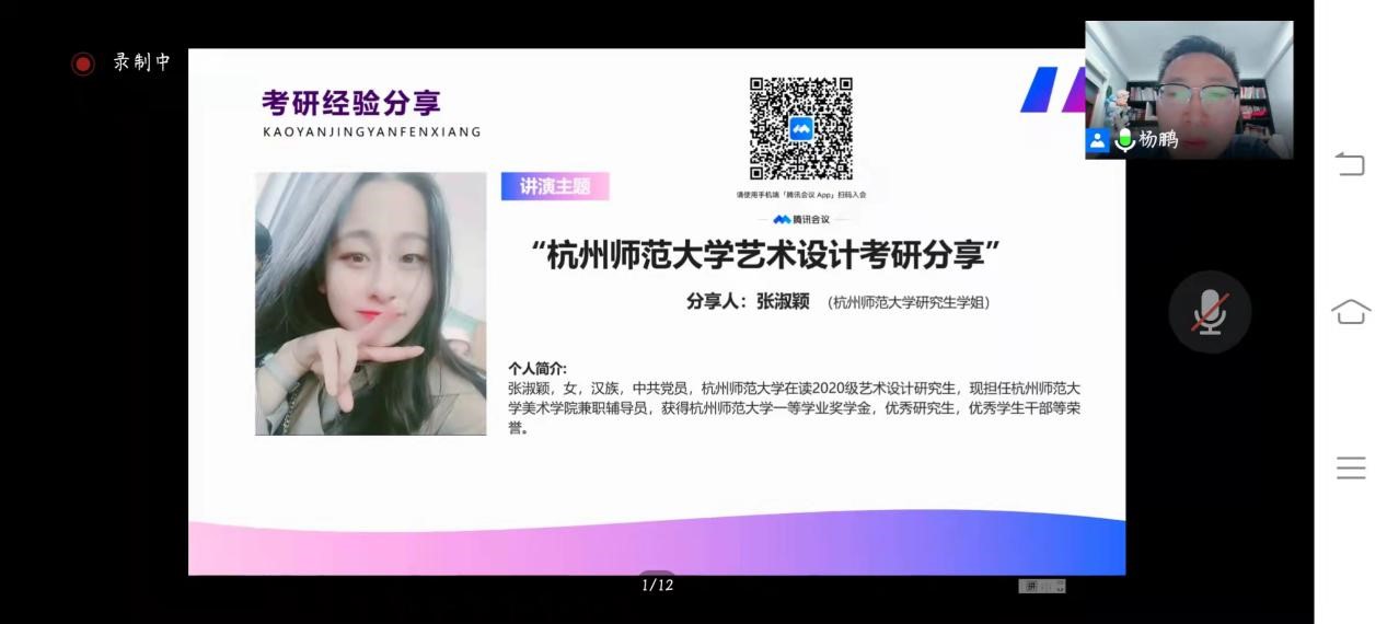 而接下来的张淑颖学姐则分享的是自己的考研经验,张淑颖学姐是杭州师范大学2020级艺术设计在读研究生。
